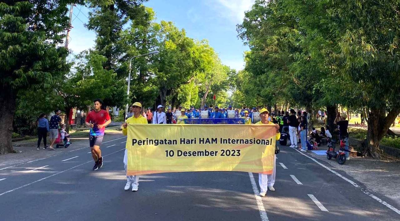 ![]() 图2:世界人权日,法轮功学员举行环绕瑞能广场(Lapangan Renon)行程为三公里的游行。 |