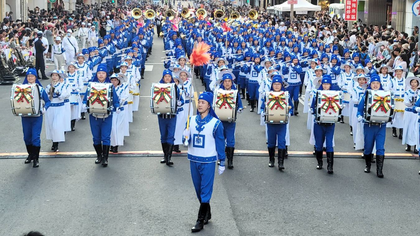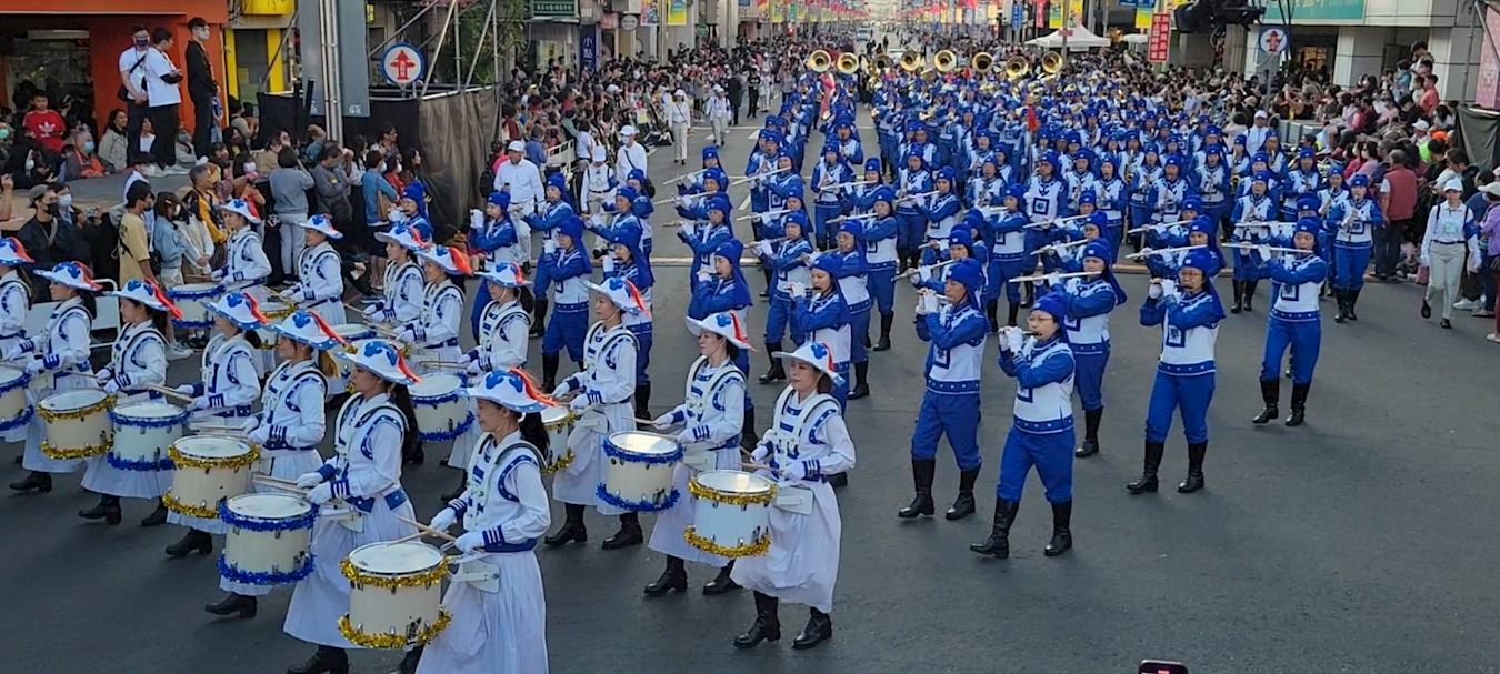 【明慧网二零二三年十二月十八日】(明慧台湾记者站嘉义采访报导)二零二三年十二月十六日周末,台湾法轮大法天国乐团受邀参加第三十一届“国际管乐节”嘉年华踩街活动,五十多支世界各地的管乐团参与。由亚太法轮功学员组成的天国乐团作为压轴演出,壮观的队伍,在嘉义市繁荣的街上,演奏出雄壮祥和的军乐,全台数十万民众夹道观赏,赢得热烈掌声与欢呼。
