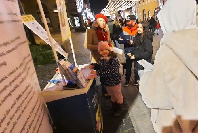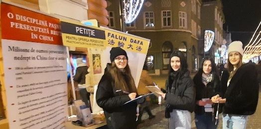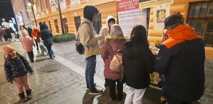 米拉贝拉·瓦西里(Mirabela Vasile)和菲利普·沃伊庫(Filip Voicu)都是十六岁的学生,他们与法轮功学员交谈,了解更多有关法轮大法的信息。当听到法轮大法真、善、忍的原则,米拉贝拉表示,她自己的人生观符合法轮大法的理念。