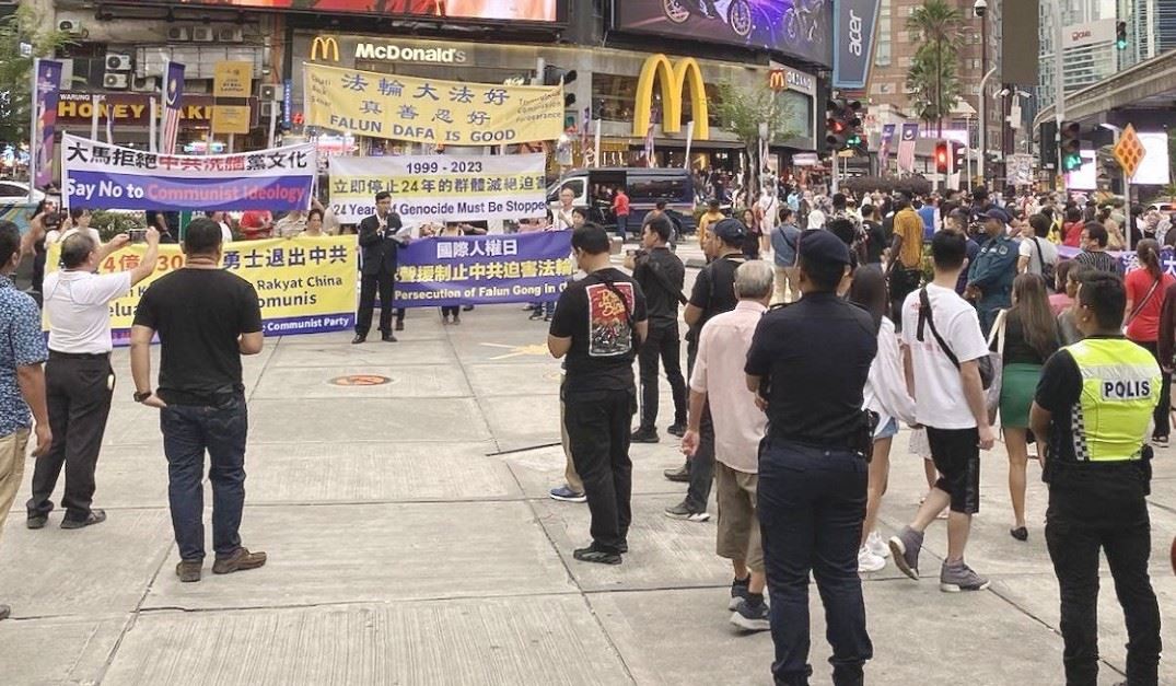 ![]() 图1:二零二三年十二月十日国际人权日当天,马来西亚部分法轮功学员来到中共驻马使馆对面,举行反迫害集会。 |