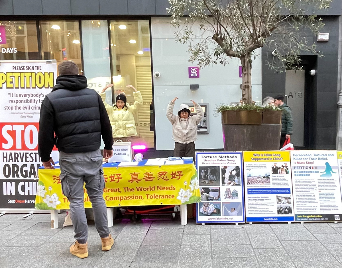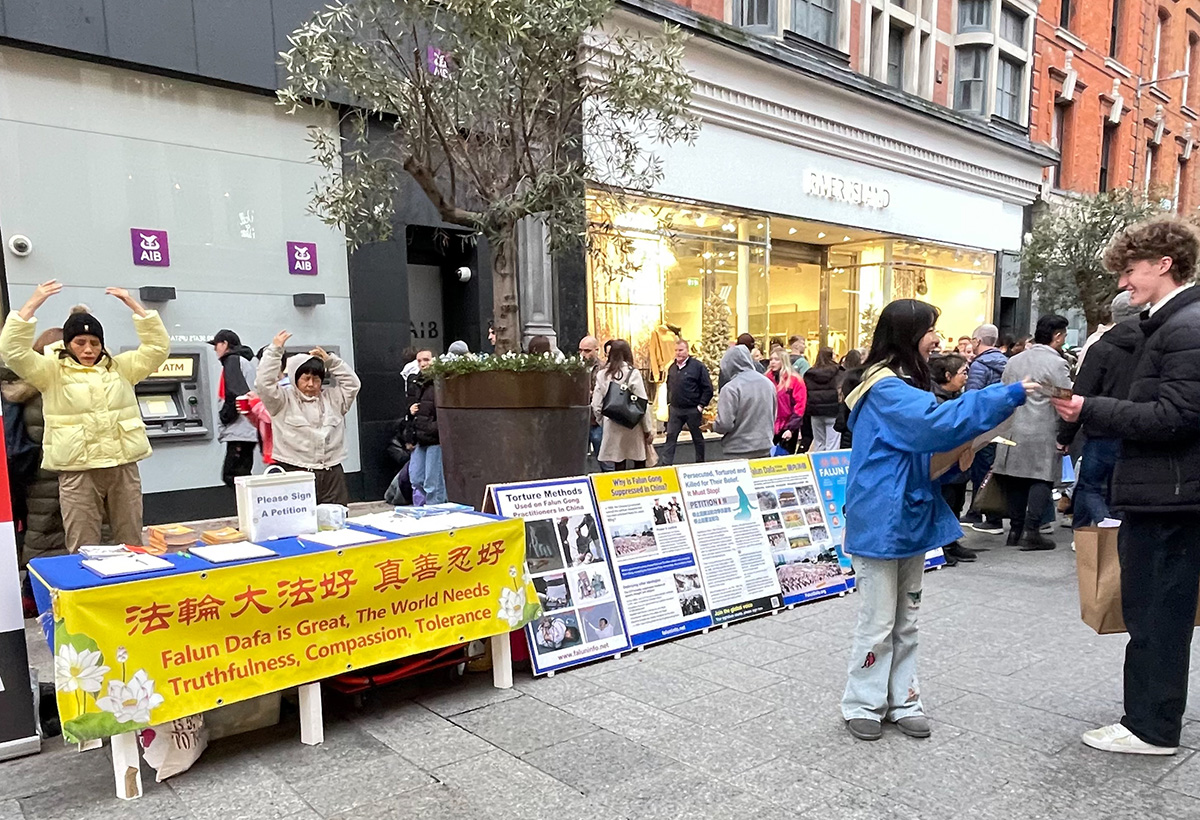 ![]() 图1~4:十二月十六日,爱尔兰法轮功学员在首府都柏林举行市中心讲真相,民众观看展板、与学员交谈后,签名要求制止迫害。 |