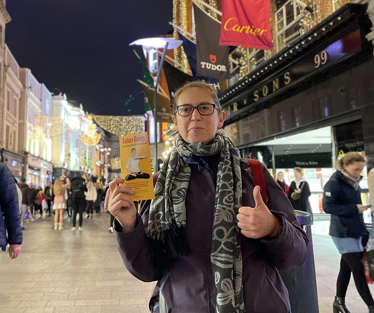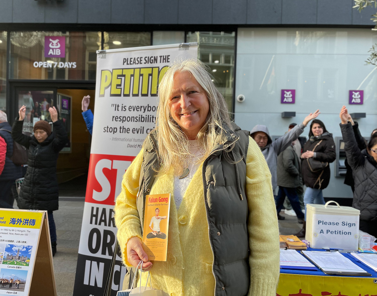 在问及为什么来签名时,另一位爱尔兰居民布蕾达(Berrda)说,“因为学员受到的残酷对待”,布兰达表示这已经不是她第一次在征签表上签名了,“这样祥和、优美、古老的功法,无论是用任何一种方式,我们必须表明自己的立场。”
