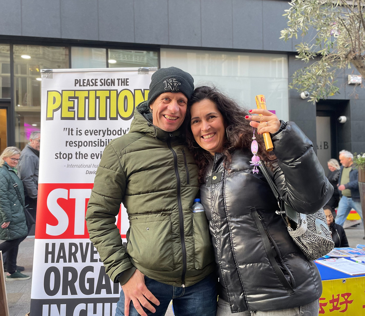 米兰达后来继续观看真相展板上的内容,了解到因为修炼法轮功、坚持对真、善、忍的信仰,中国的法轮功学员就被酷刑折磨、甚至活摘器官。这让米兰达大吃一惊。她的丈夫勒尔德(Herald)看过许多披露中共活摘器官的内容。在和丈夫与法轮功学员交谈后,米兰达立即签名要求制止迫害。
