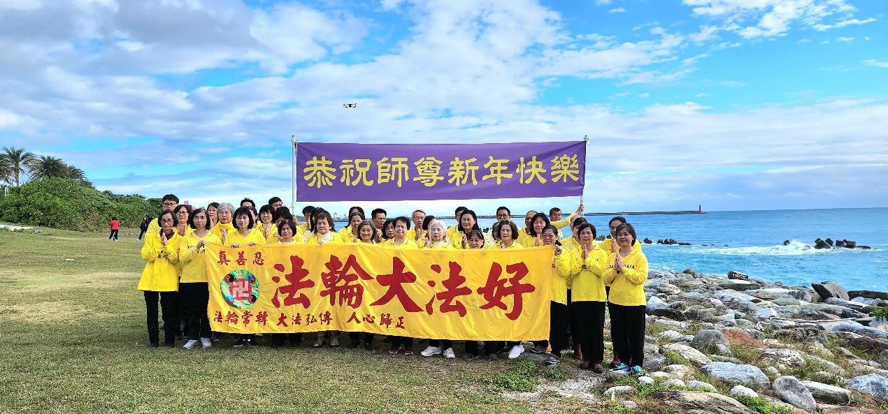 ![]() 图1:二零二三年岁末,花莲部分法轮功学员,齐聚太平洋公园共欢新故岁,提前向师尊拜年祝贺二零二四年新年好。 |