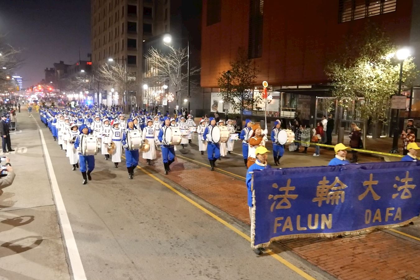 当晚的游行全程长一点四英里,是一场视觉的盛宴,融入了代表每个节日的元素。成千上万的观众聚集在游行沿线,欣赏花车、圣诞老人、军乐队、腰鼓队,以及各种游行队伍充满活力的表演。
