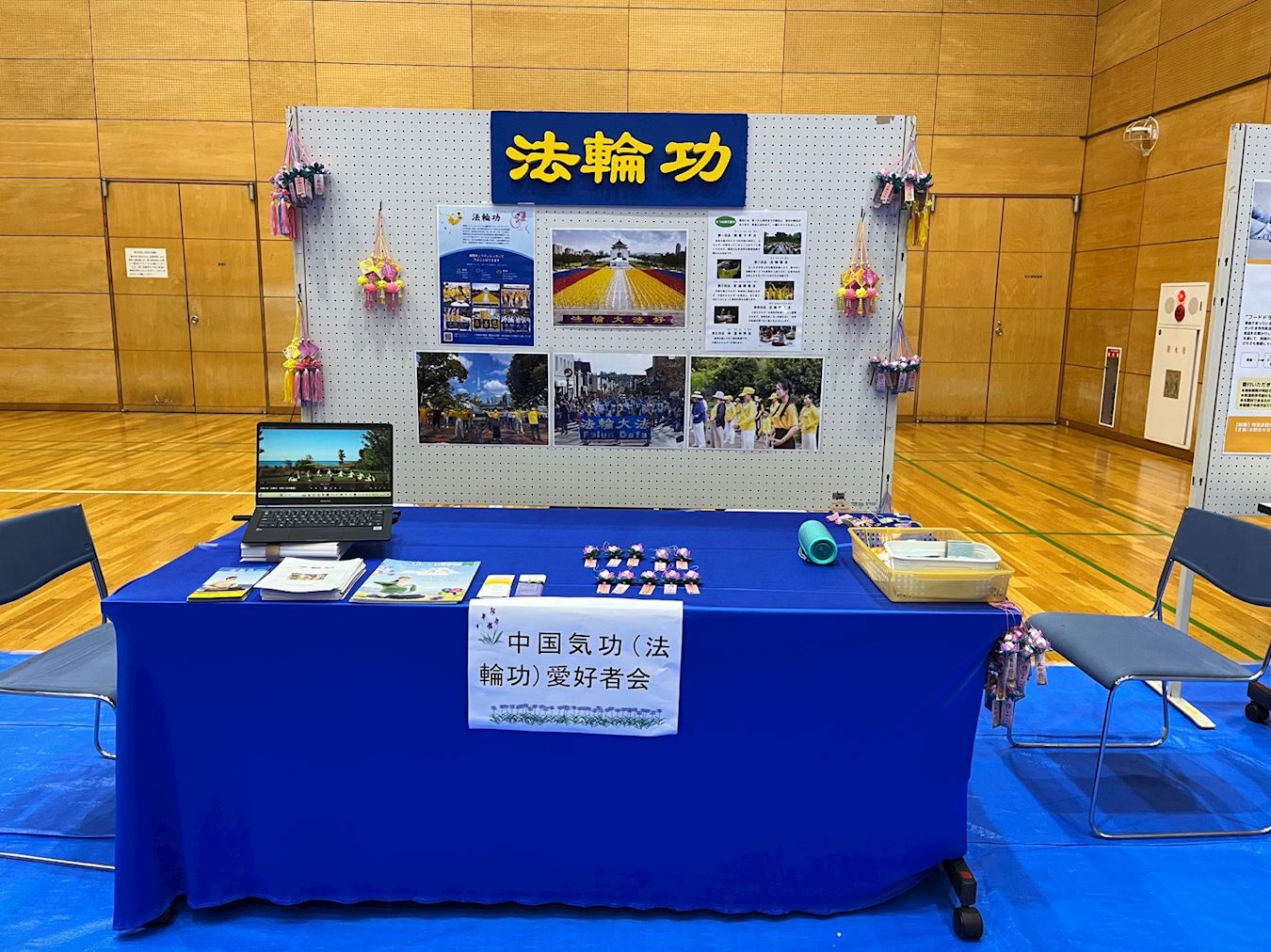 埼玉市岩槻区以日本人偶出名,所以,该展示会上大多是以绘画、盆栽、传统手工艺品等的展位,还有与健康有关的展位。法轮功学员也前来设立了展位。