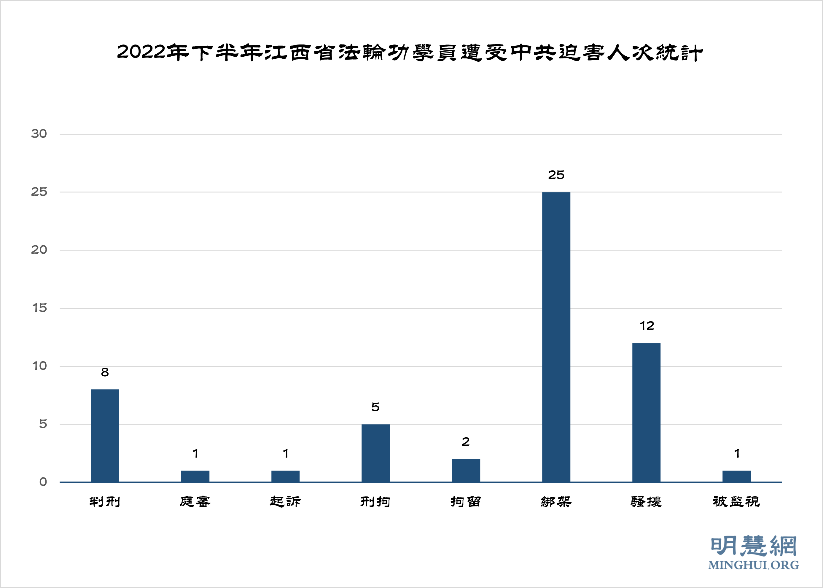![]() 图2:2022年下半年江西省法轮功学员遭受中共迫害人次统计 |