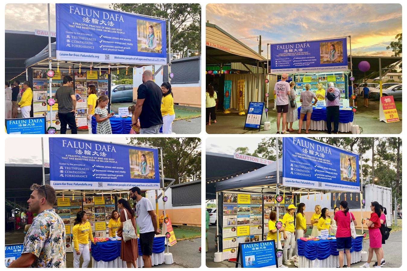 “现在正在打坐的约翰,因为修炼法轮功而遭受中共的酷刑。约翰毕业于中国著名的清华大学,因拒绝放弃修炼,被非法判刑十年,后来到澳洲。他被殴打和折磨并被迫做奴工,在田里干活、制作圣诞饰品卖到海外。当你看到他如此平静地坐在这里时,你很难想象他过去因中共的迫害而承受的痛苦。”主持人详细地介绍了五套功法并讲述了法轮功遭受中共迫害的真相。