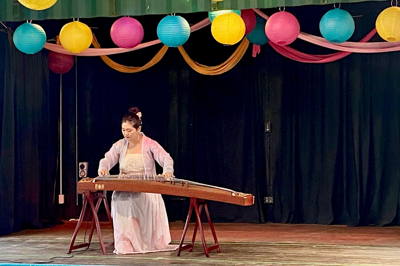 法轮功团体展示了平静、祥和的五套功法,表演了舞龙、腰鼓舞、舞蹈和乐器,大法小弟子身穿中国各民族服饰合唱《法轮大法好》充满活力,为当地民众带来了内涵丰富的中国传统文化和大法的美好。