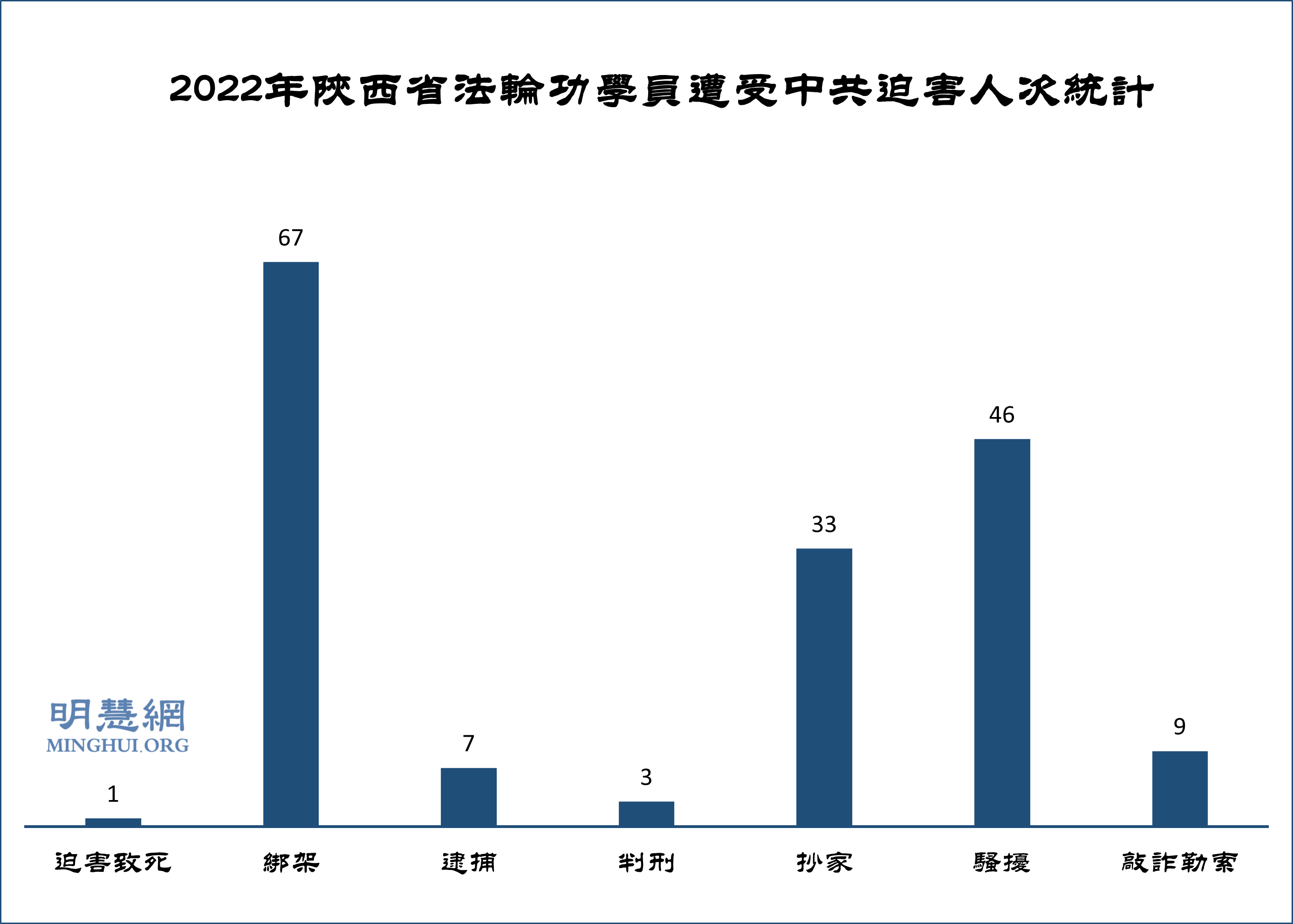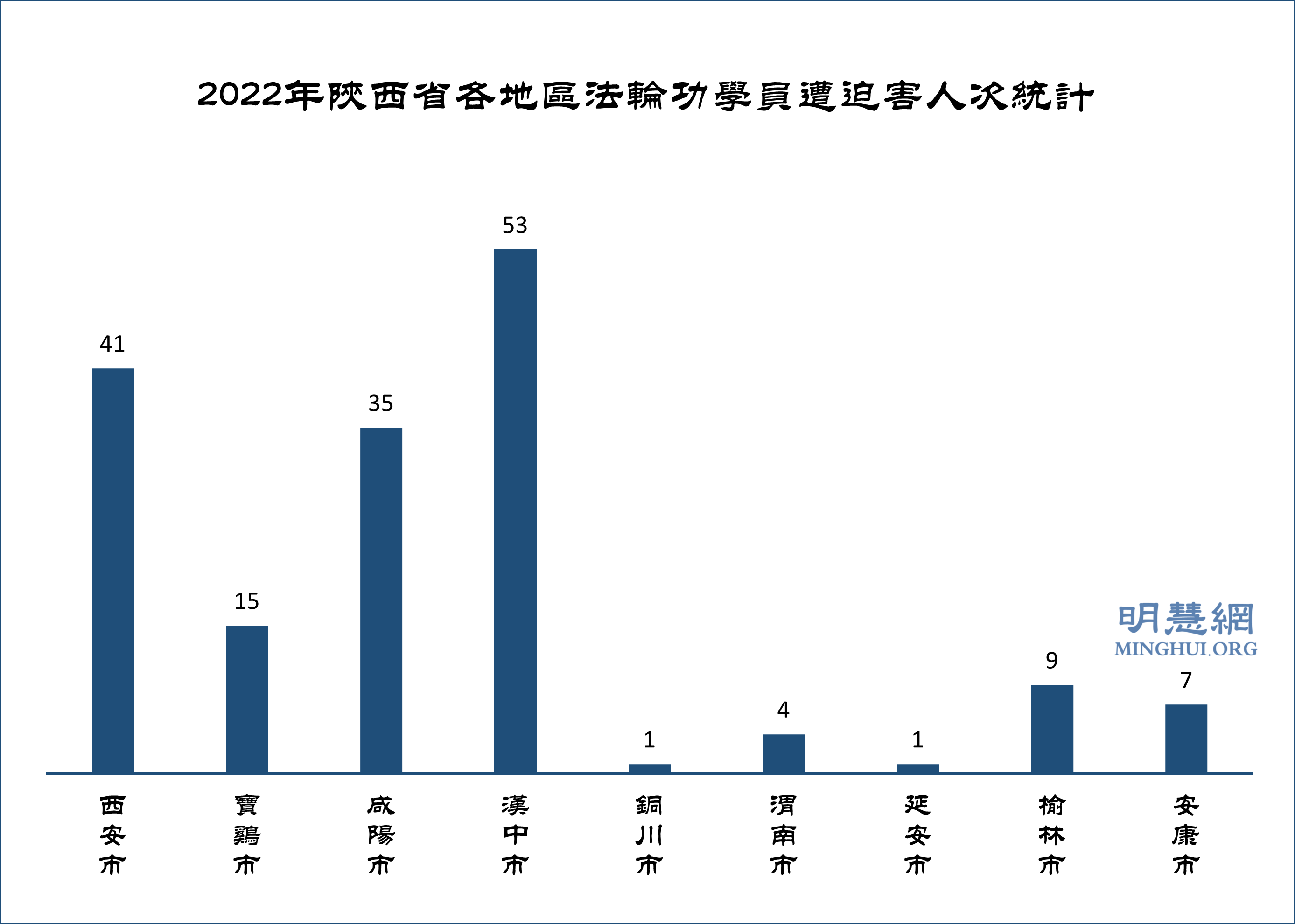 ![]() 图1:2022年陕西省法轮功学员遭受中共迫害人次统计 |