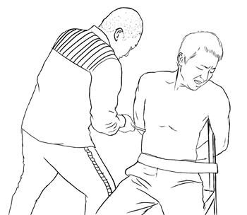将法轮功学员捆绑在椅子上,两个刑事犯人用一根手指粗大小的棍子,用力去一根一根地去挑法轮功学员的肋骨,折磨法轮功学员1-2小时左右。导致法轮功学员皮肤黑肿起来了。到第二天就更痛,过几天后洗澡的时候,被挑的那些地方都会脱皮。