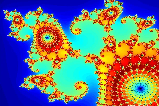 在“上帝指纹”公式中,所有的变量都以复数形式出现,当你代入计算时,你发现所有的局部图形都能呈现出和整体的相似之处,仔细观察图形内的边边角角,都会出现与整体高度相似的地方,局部图形堪称整体的缩微版。