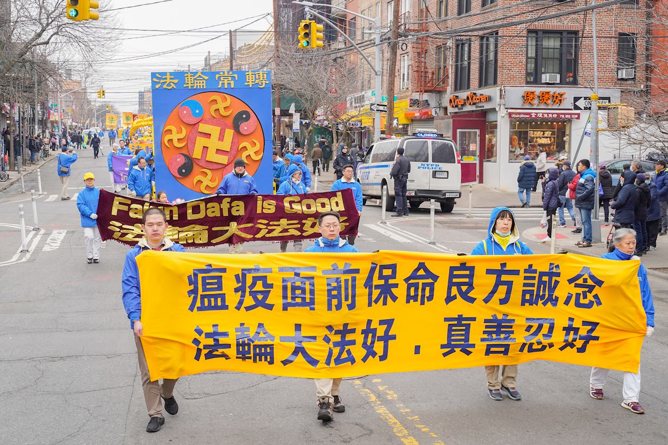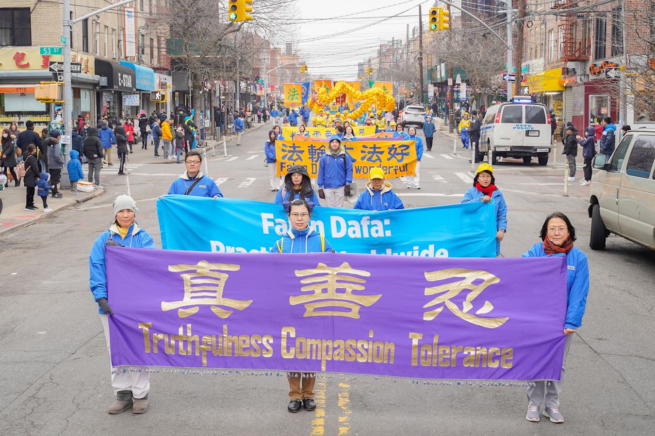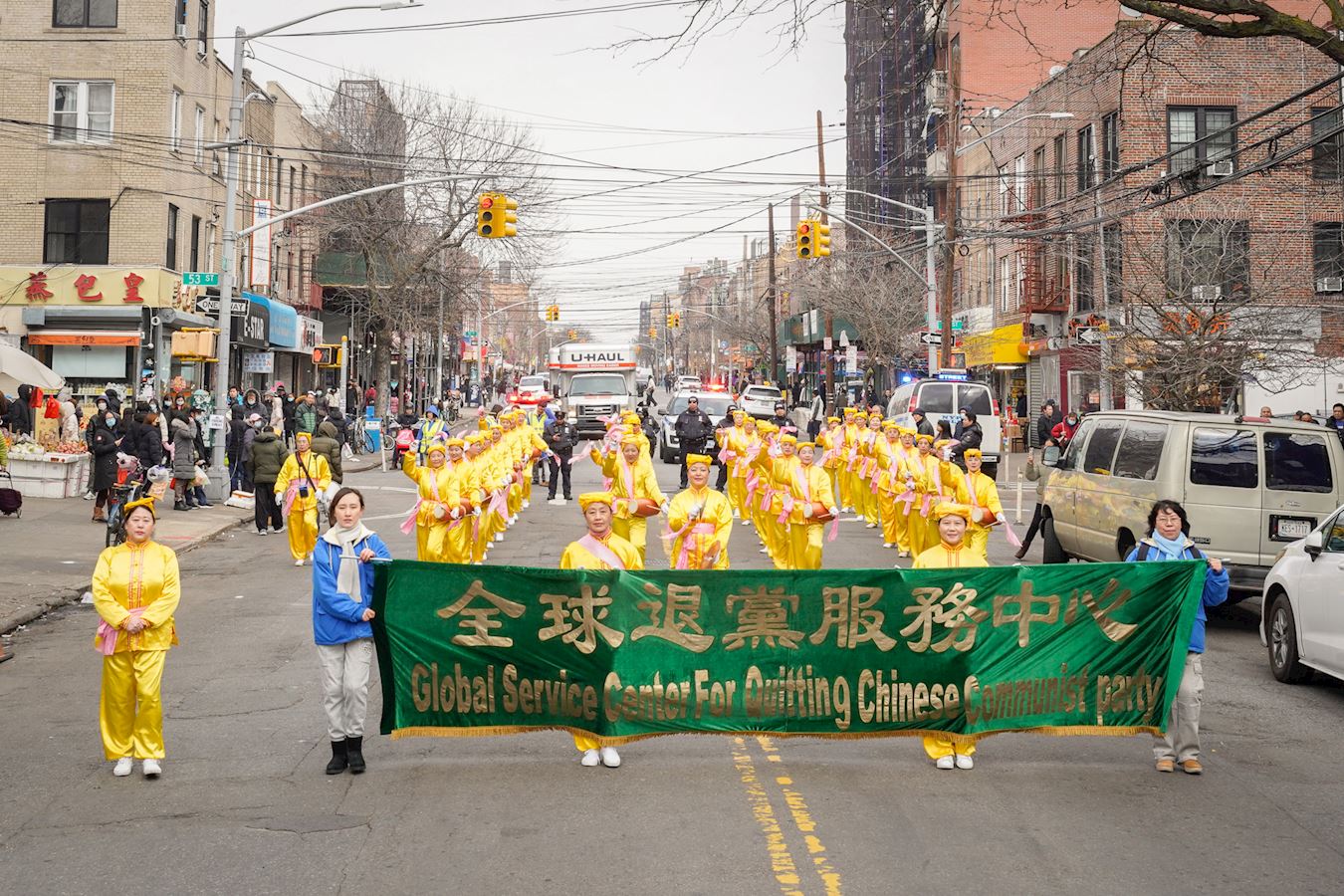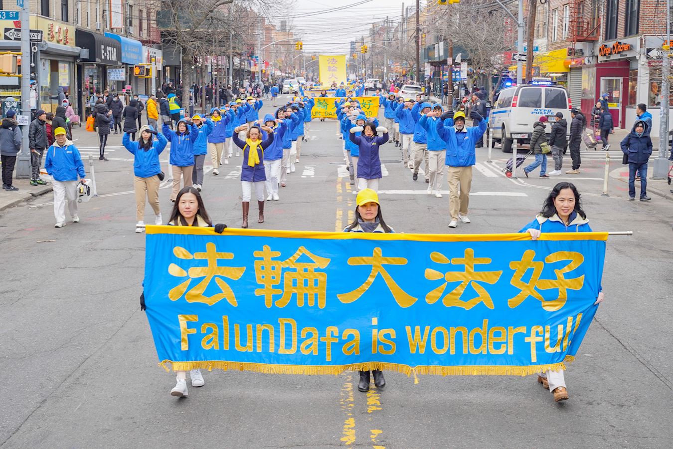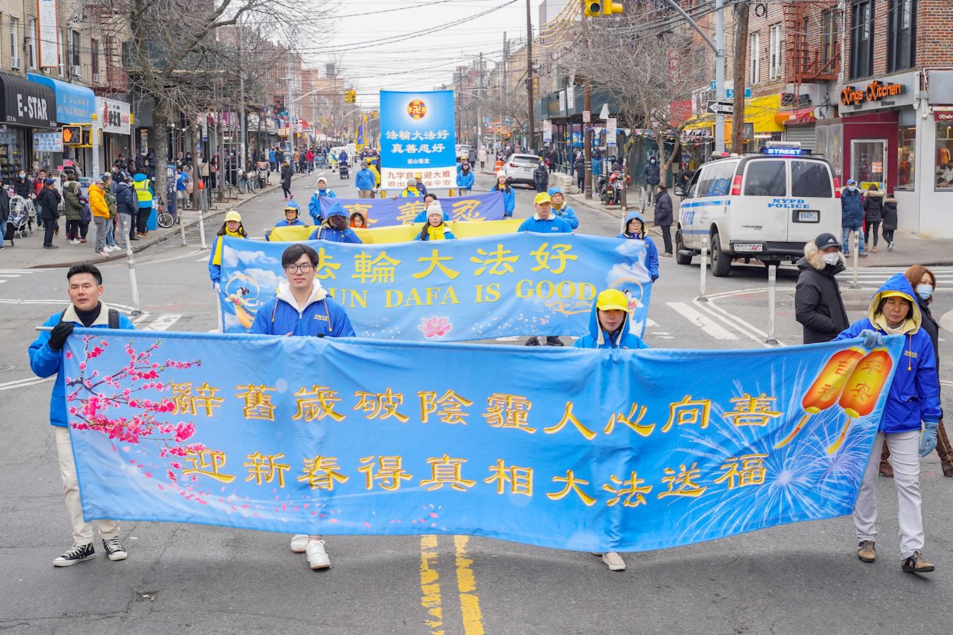 【明慧网二零二三年二月二十八日】二零二三年二月二十六日(周日),大纽约地区的上千名法轮功学员,在纽约第三大华人社区---布碌崙(布鲁克林)八大道举行盛大游行,为当地民众送上法轮大法的美好与福音,并声援近四亿一千万勇士三