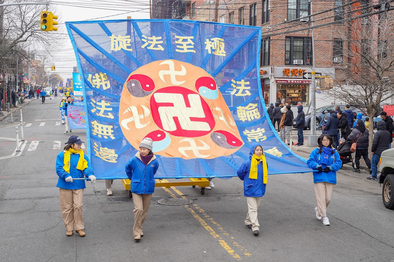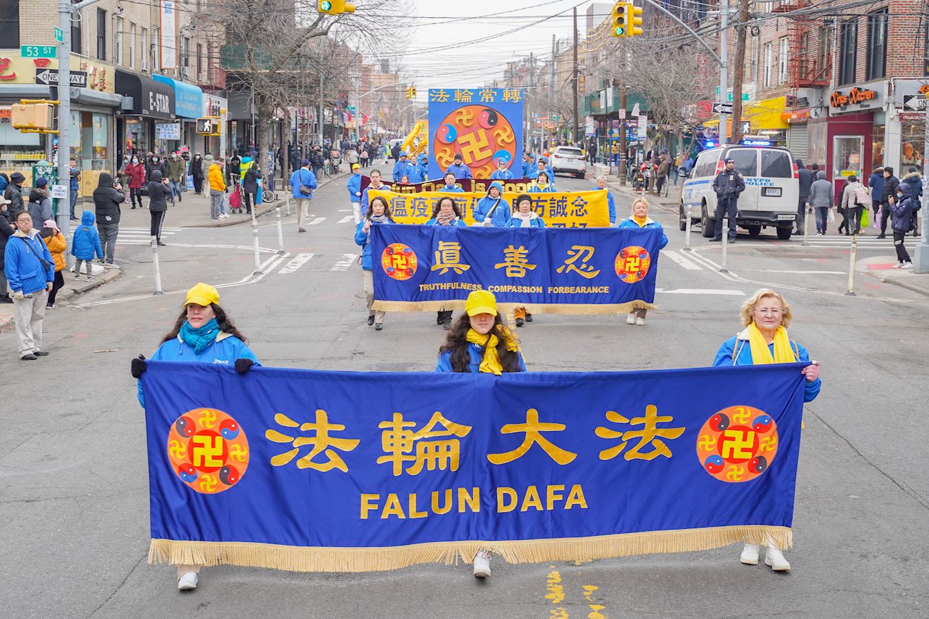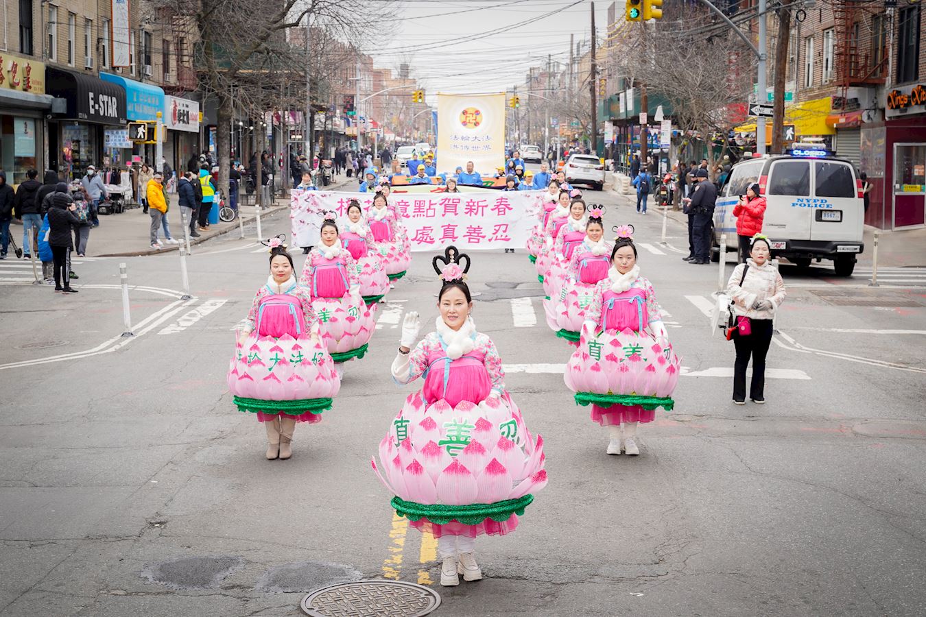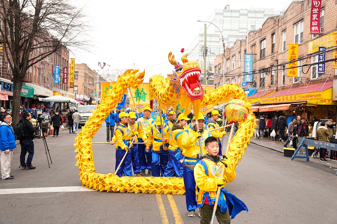 【明慧网二零二三年二月二十八日】二零二三年二月二十六日(周日),大纽约地区的上千名法轮功学员,在纽约第三大华人社区---布碌崙(布鲁克林)八大道举行盛大游行,为当地民众送上法轮大法的美好与福音,并声援近四亿一千万勇士三