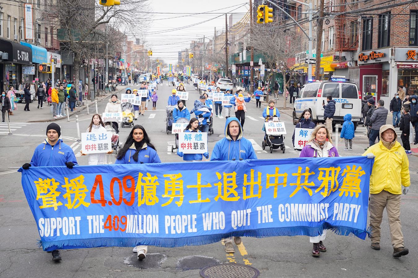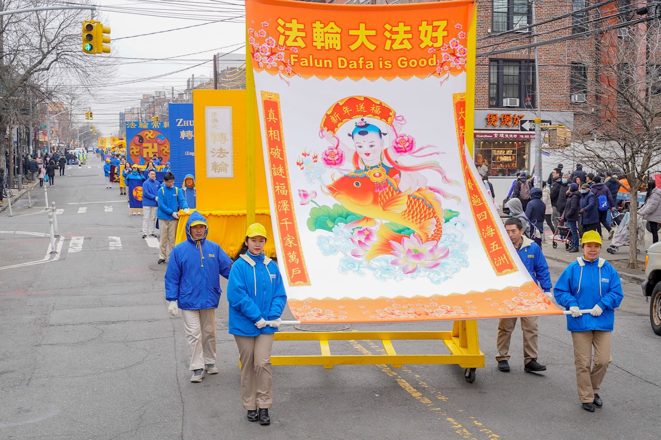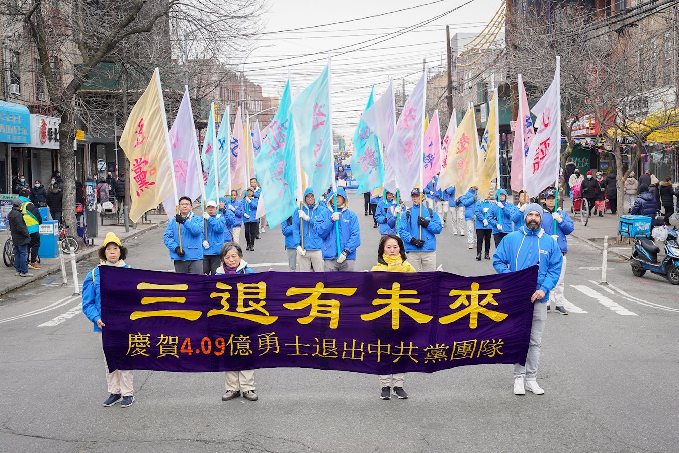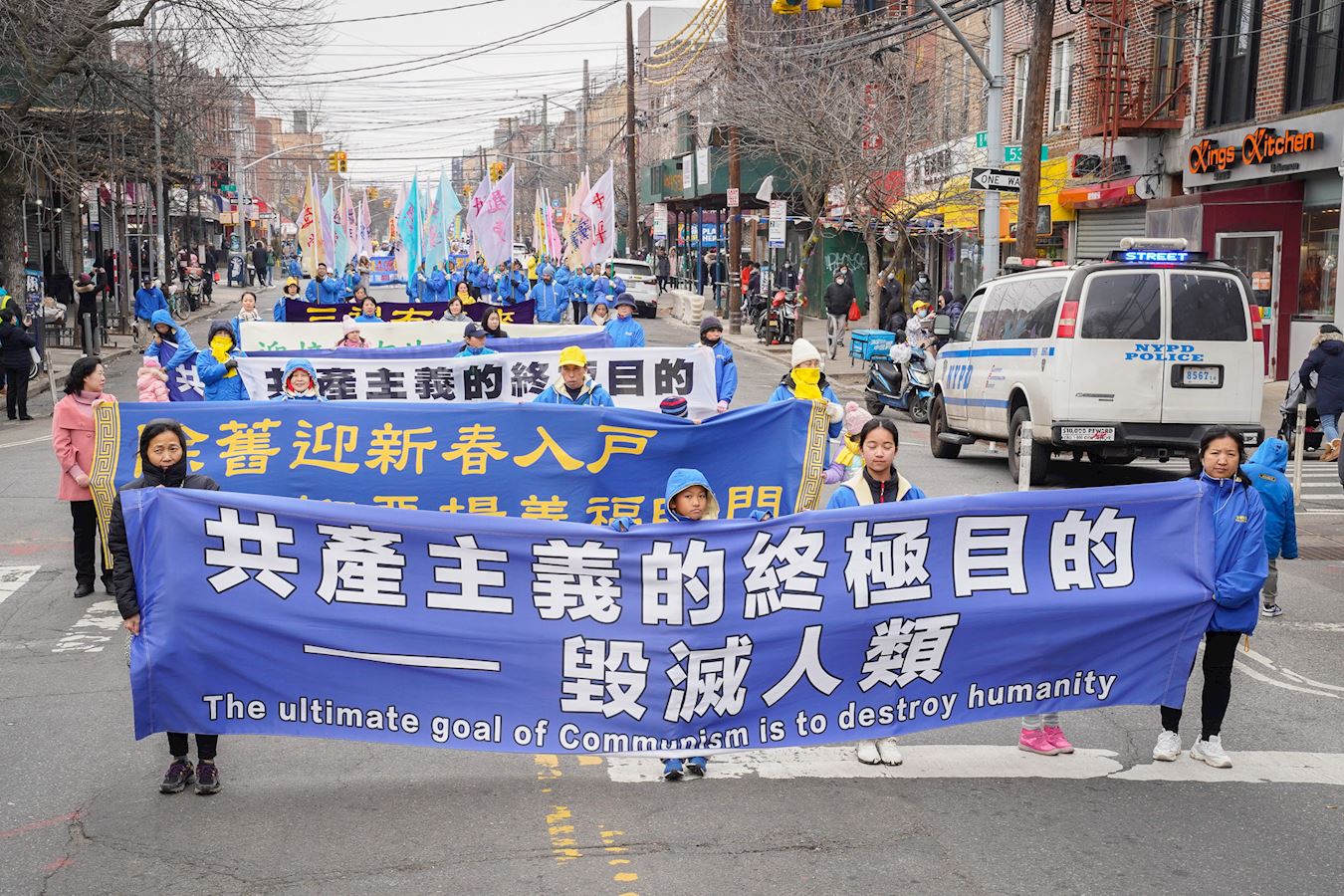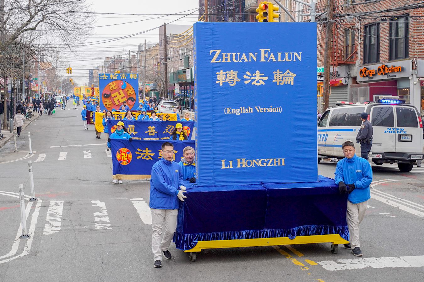 【明慧网二零二三年二月二十八日】二零二三年二月二十六日(周日),大纽约地区的上千名法轮功学员,在纽约第三大华人社区---布碌崙(布鲁克林)八大道举行盛大游行,为当地民众送上法轮大法的美好与福音,并声援近四亿一千万勇士三