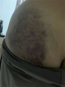 山东省昌邑市法轮功学员张爱荣,二零二二年六月二十五日一大早被警察非法入室抄家抢劫、绑架,当天回家,她身体多处淤青,下面有几张照片,她前胸还有更大的几处没拍。