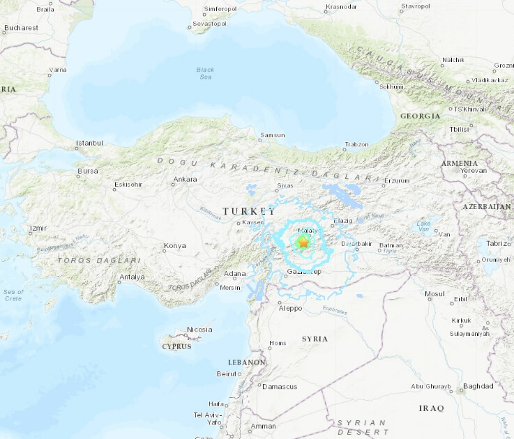 据美国地质调查局(USGS),地震发生在加济安泰普省(Gaziantep)努尔达吉(Nurdagi)以东23公里(14.2英里)处。努尔达吉位于土耳其-叙利亚边境沿线,该地区的多个国家都有震感,包括塞浦路斯、叙利亚、黎巴嫩、约旦、伊拉克以及遥远的罗马尼亚、俄罗斯南部和埃及。