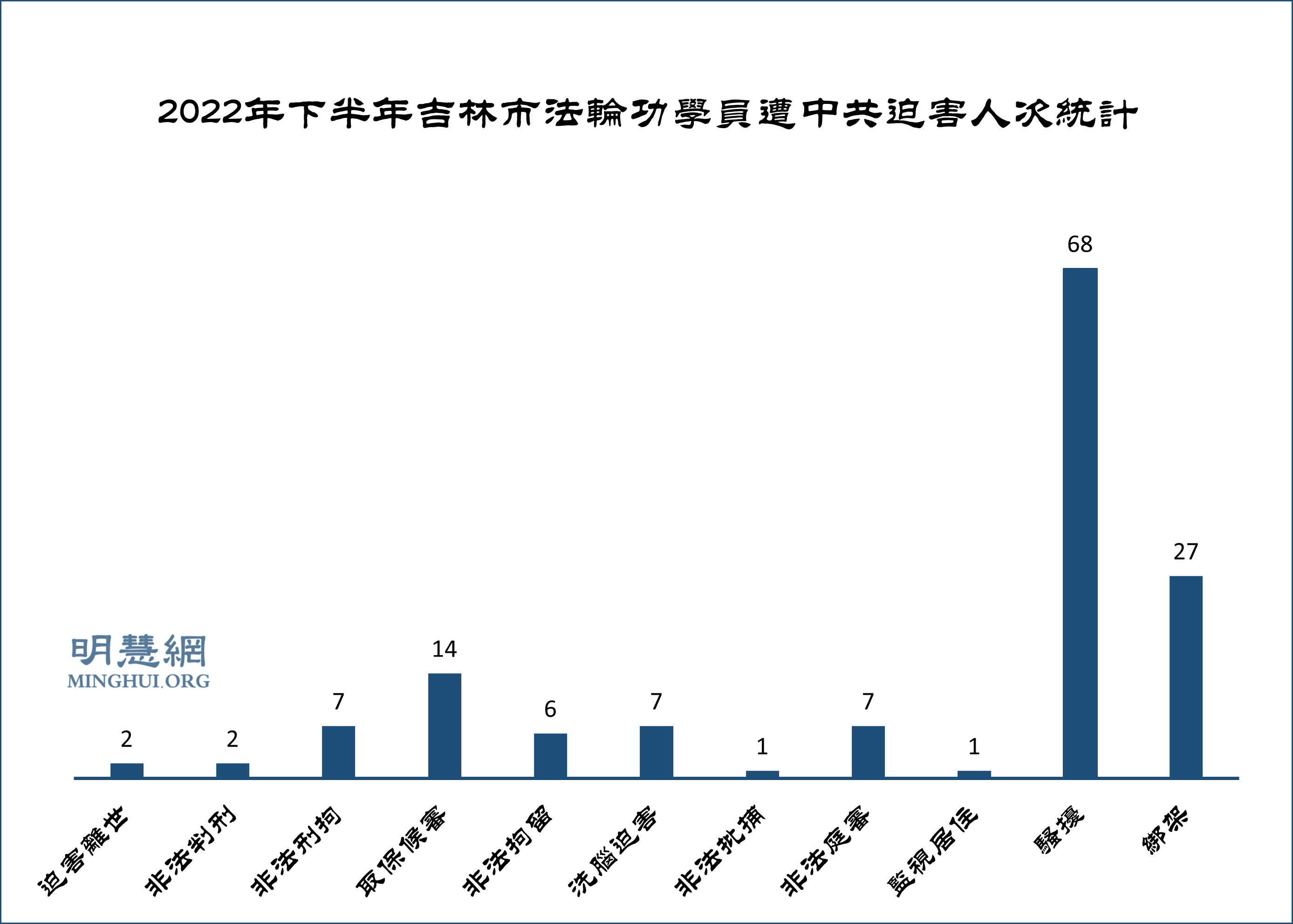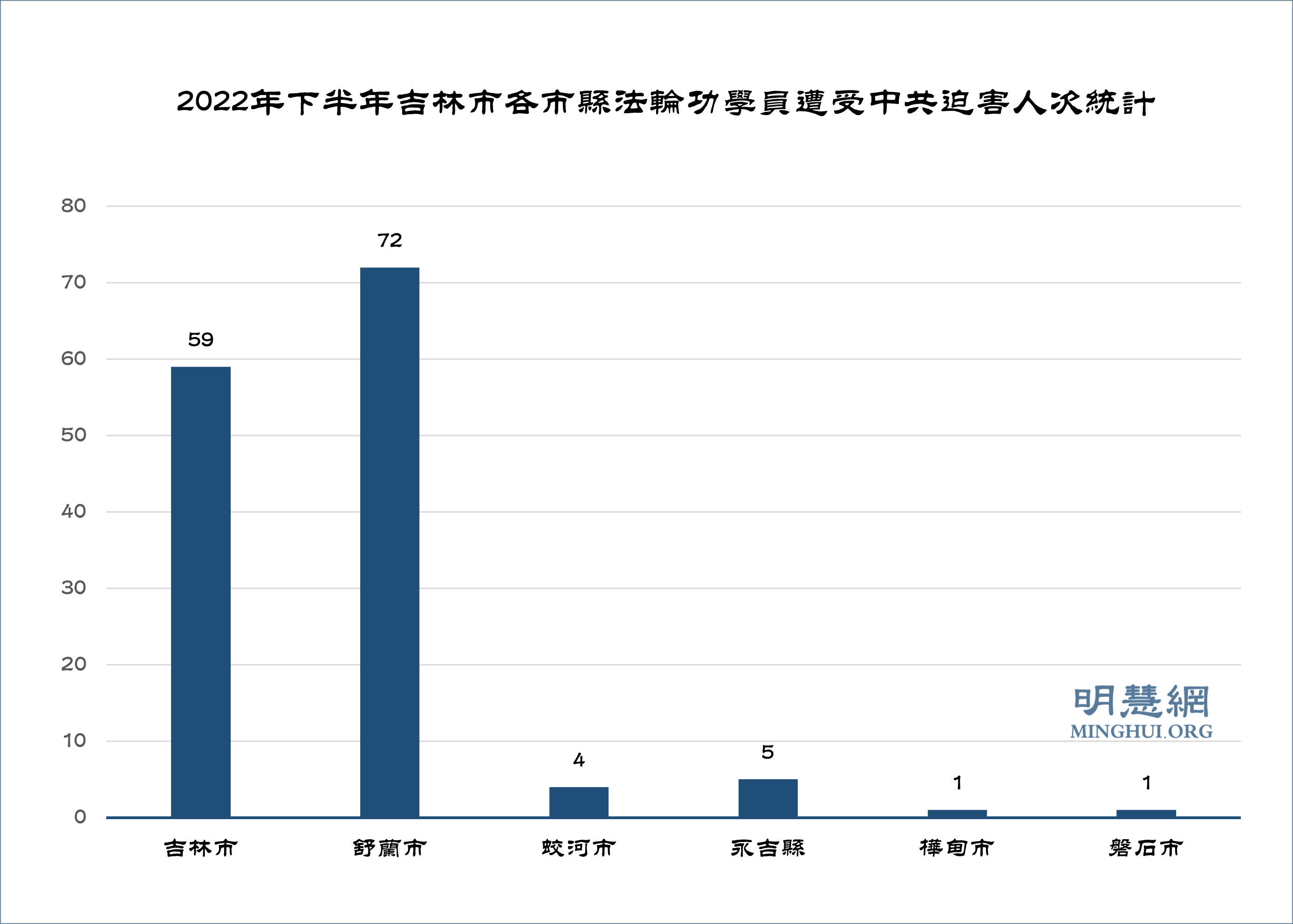 ![]() 图1:2022年下半年吉林市法轮功学员遭中共迫害人次统计 |