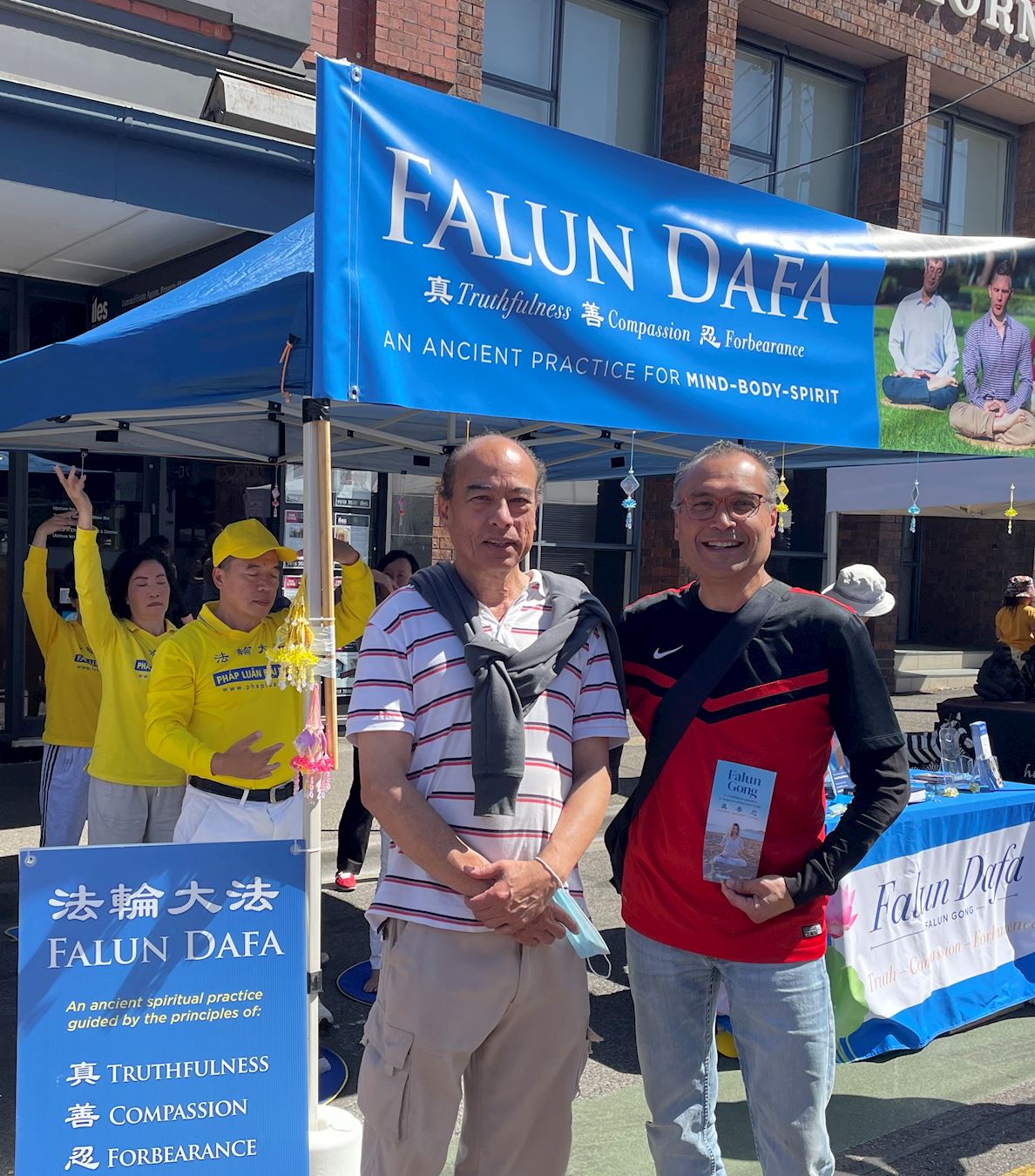 特洛伊·昆塔尔(Troy Quintal)是一位资深的贷款经纪人,在西澳首府珀斯合伙拥有一家贷款经纪公司,并担任高级财务经理。当天,在墨尔本友人的陪同下前来观光。他在法轮功的摊位旁观看功法展示,并和学员交谈了很长时间。