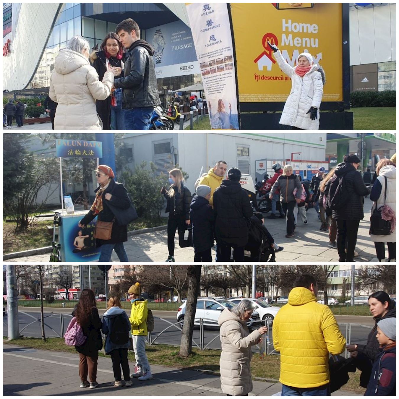 ![]() 图1:法轮功学员在布加勒斯特大型购物中心讲真相。 |