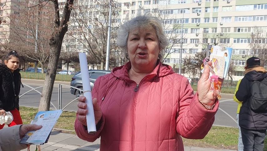 米欧拉·特里夫女士(Mioara Trifu)和丈夫路过法轮功真相点,好奇地停下来,他们询问什么是法轮功。当他们了解到法轮功是什么,知道法轮功已经传人罗马尼亚二十多年的真相后,非常欣喜。他们对中共屠杀信仰真、善、忍的法轮功学员感到震惊。
