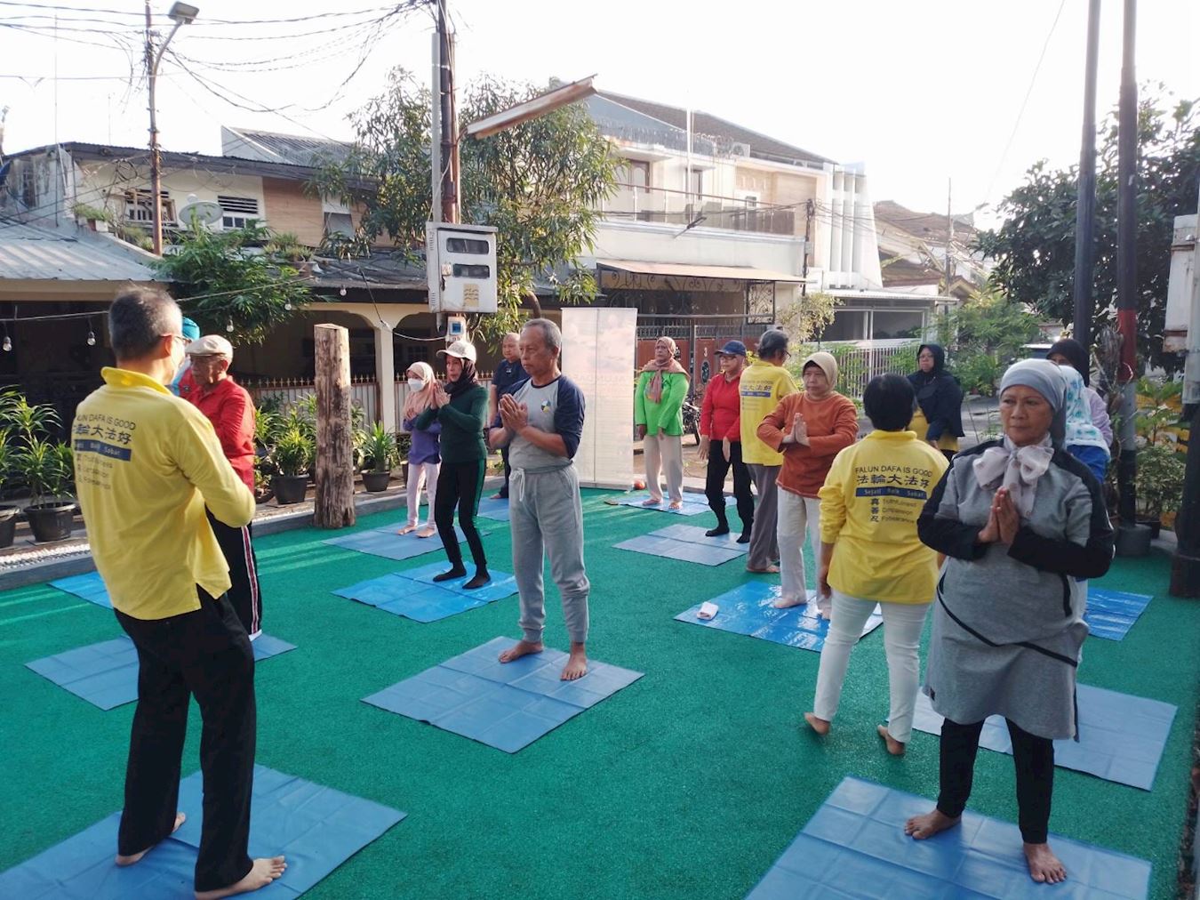 ![]() 图1~3:二零二三年三月十八日,印度尼西亚法轮功学员应邀在雅加达的警务人员社区教功,居民们认真学炼功法。 |