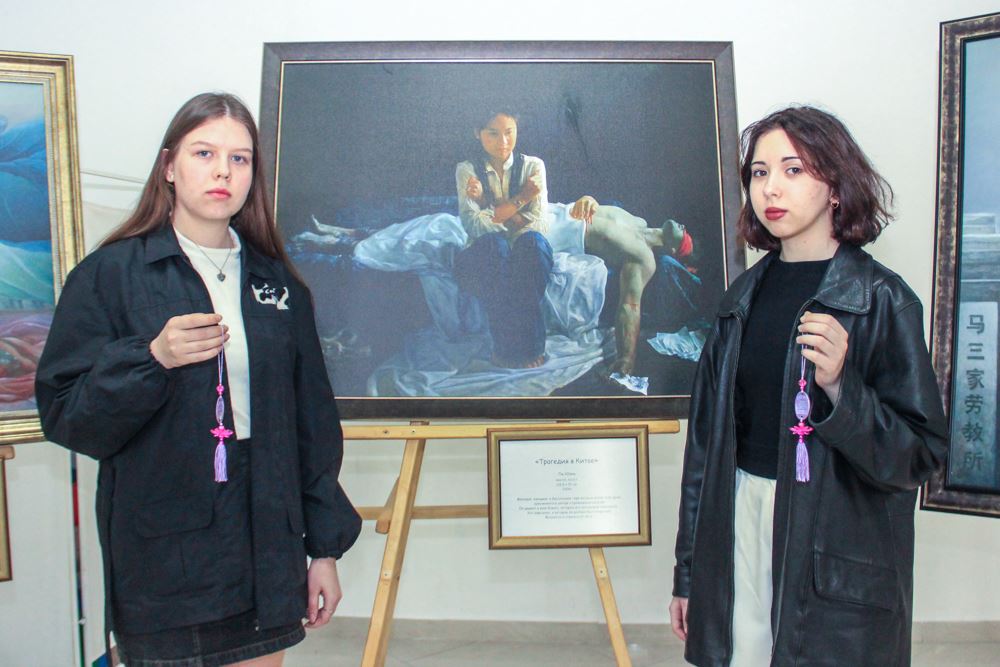 学生达里亚(Daria)认真观看了每一幅作品,他说:“通过参观展览,我了解了我以前不知道的(中共对法轮功的)迫害,而且这种迫害还在继续。非常感谢你们的展览和意识。”
