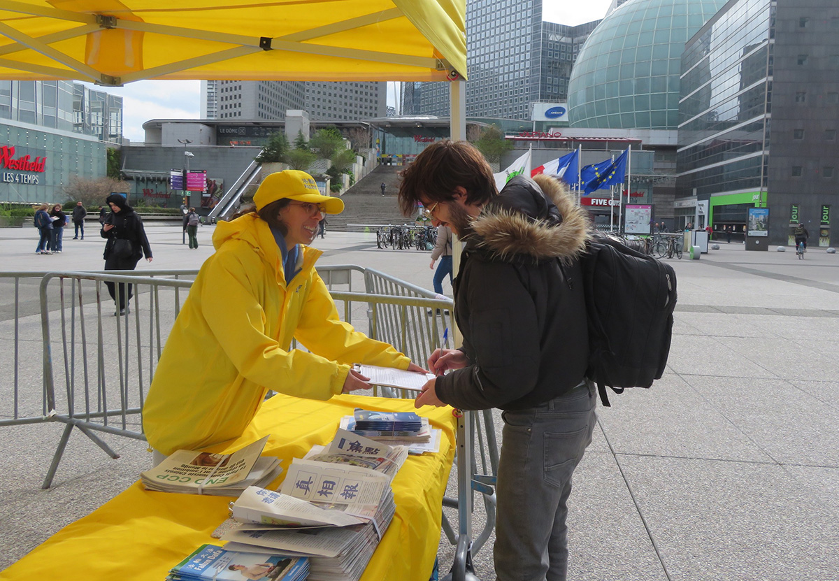 二零二三年三月二十三日和二十四日下午,巴黎部分法轮功学员分别在巴黎拉德芳斯广场和巴黎三区举办活动,讲述法轮功真相并揭露中共对法轮功的迫害。同时征集签名,呼吁人们支持法轮功学员的反迫害。