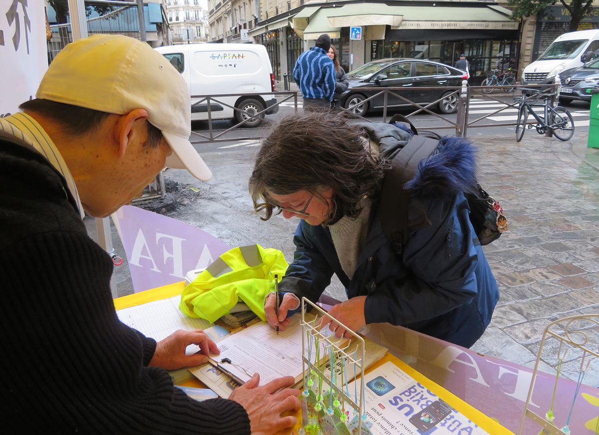 七十岁的克里斯蒂安娜(Christiane)已经退休,她在反迫害征签表上签字后又帮她的儿子签了字,她认为要停止中共对法轮功的迫害。