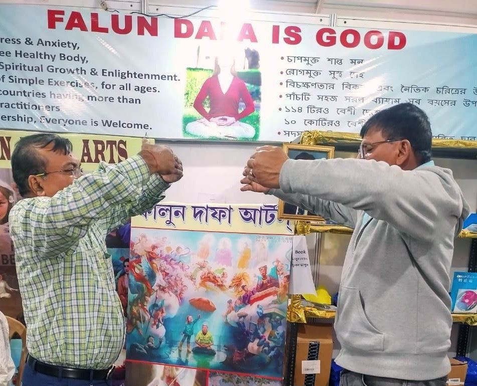 人们被翻译成当地语言孟加拉语的法轮功书籍所吸引,并欣然购买。一位支持法轮大法的人说,在印度没有一个书展上的书可以象法轮大法书籍那样卖的数量那么多。人们来自遥远的州到这里购买这些书。他们不想错过如此珍贵的东西。