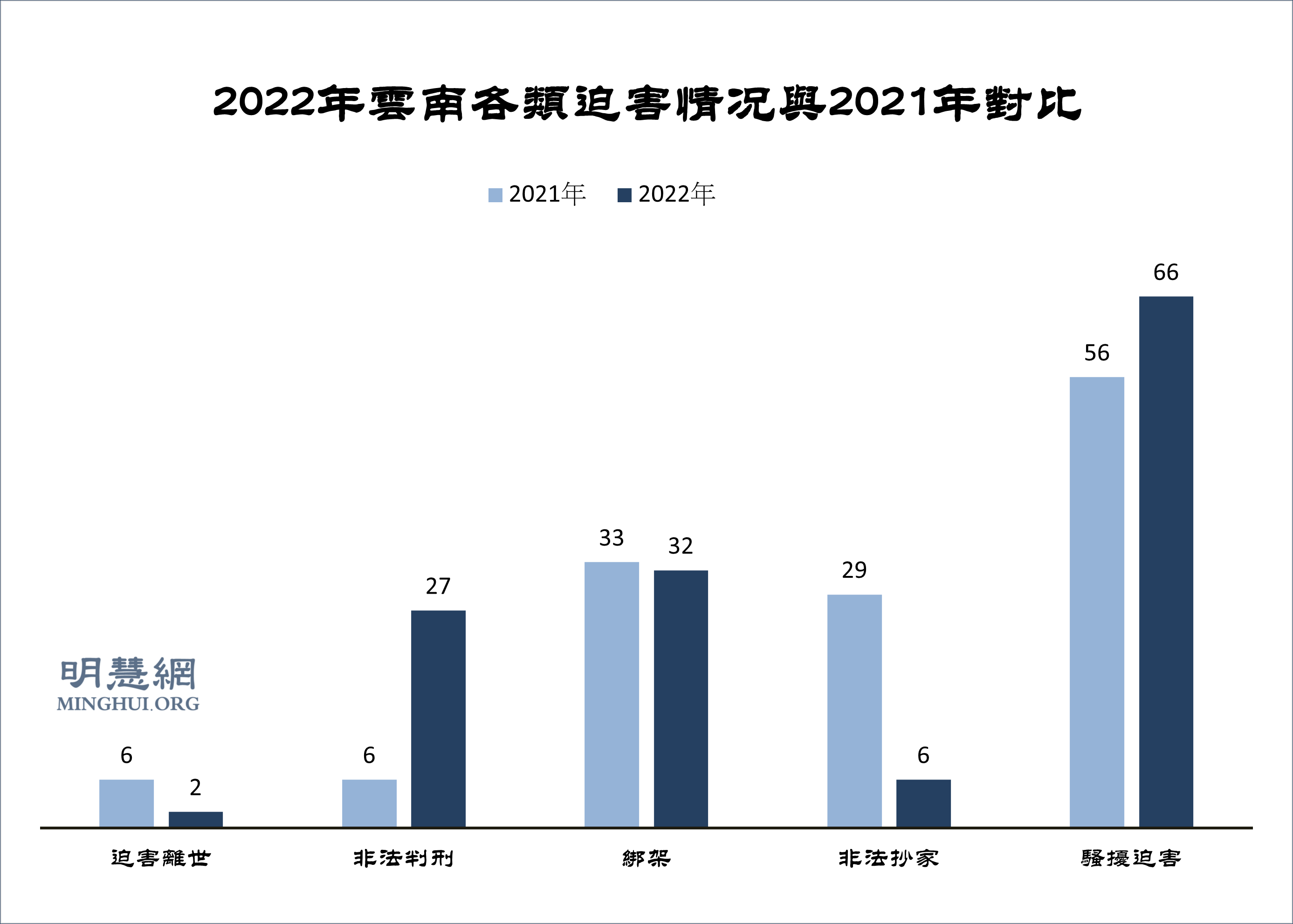 ![]() 图2:2022年云南省各类迫害情况与2021年对比图 |