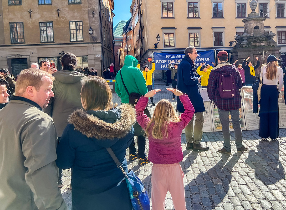 当天还有许多有缘人,他们都专注地听完学员讲述法轮功真相后,立即表示对功法很感兴趣。有一对来自西班牙的中年人,那位女士当场询问了很多有关法轮功的信息。最后她说:“共产党是邪恶的,它害怕和打压的东西肯定都是美好、珍贵的。”