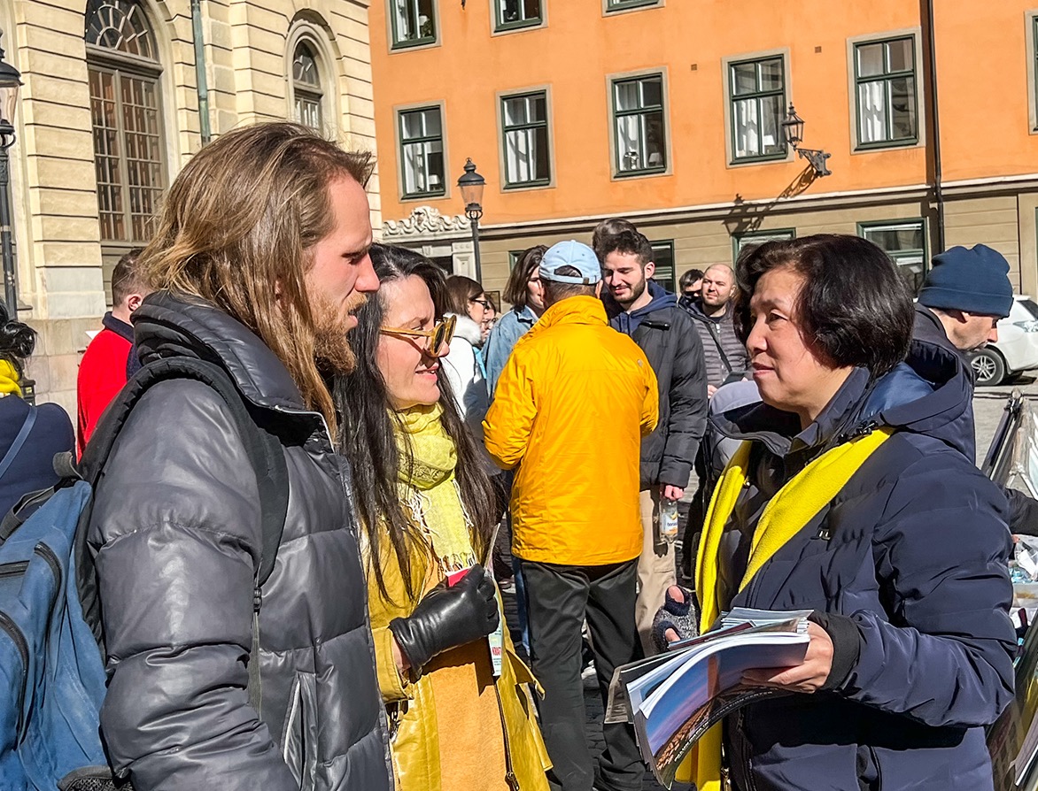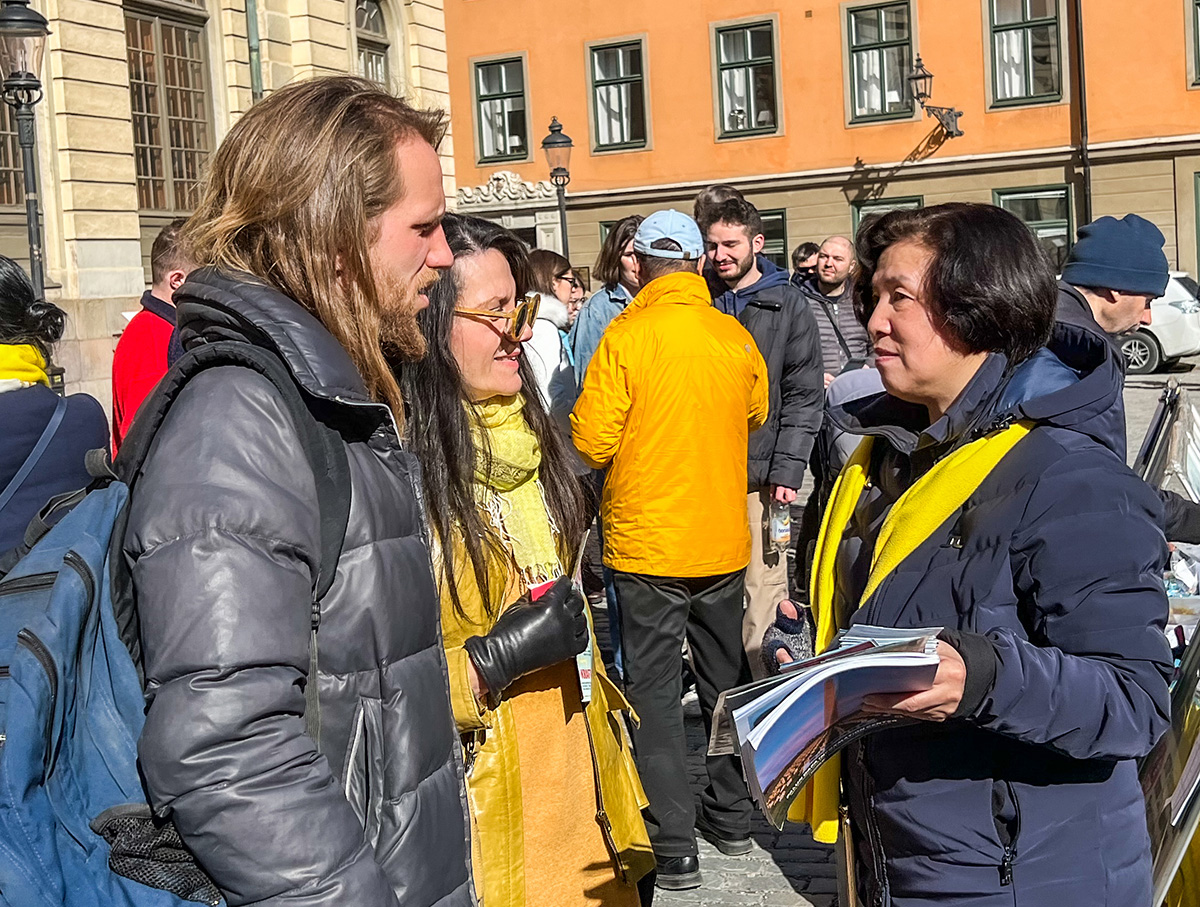 两位来瑞典旅游的美国人经过活动现场时,一看到“停止迫害法轮功”醒目的横幅,就径直走过来在反迫害征签表上签名。其中那位女士说她曾经去过中国,是美国英文《大.纪.元;时报》的忠实读者。她说:“我从中了解到了一些中国古老传统文化、法轮功真相以及很多真实的资讯。你们(法轮功学员)做得太好了,我非常支持你们。”