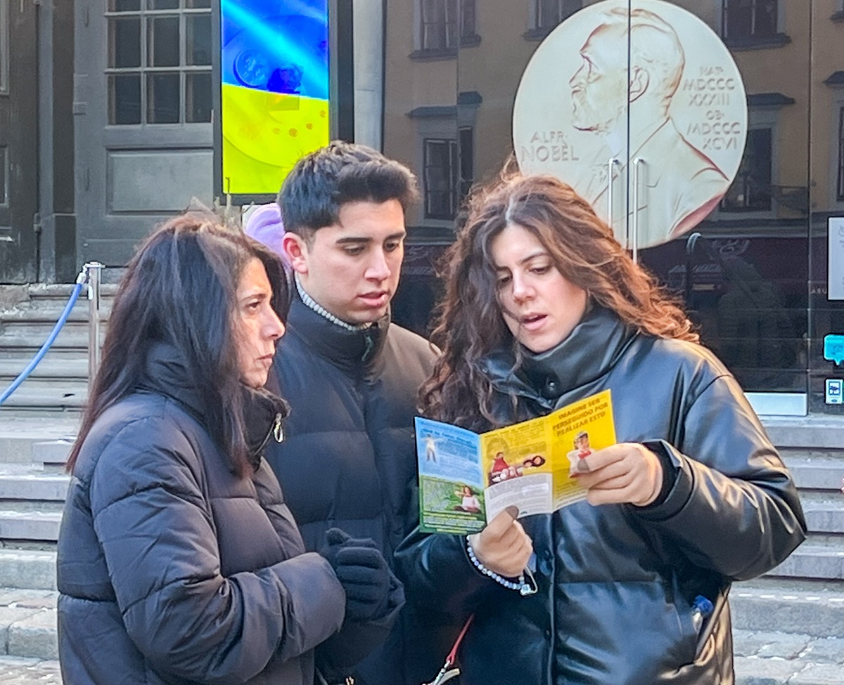 ![]() 图1~2:二零二三年四月八日,法轮功学员在斯德哥尔摩著名的诺贝尔博物馆前举办讲真相活动。 |