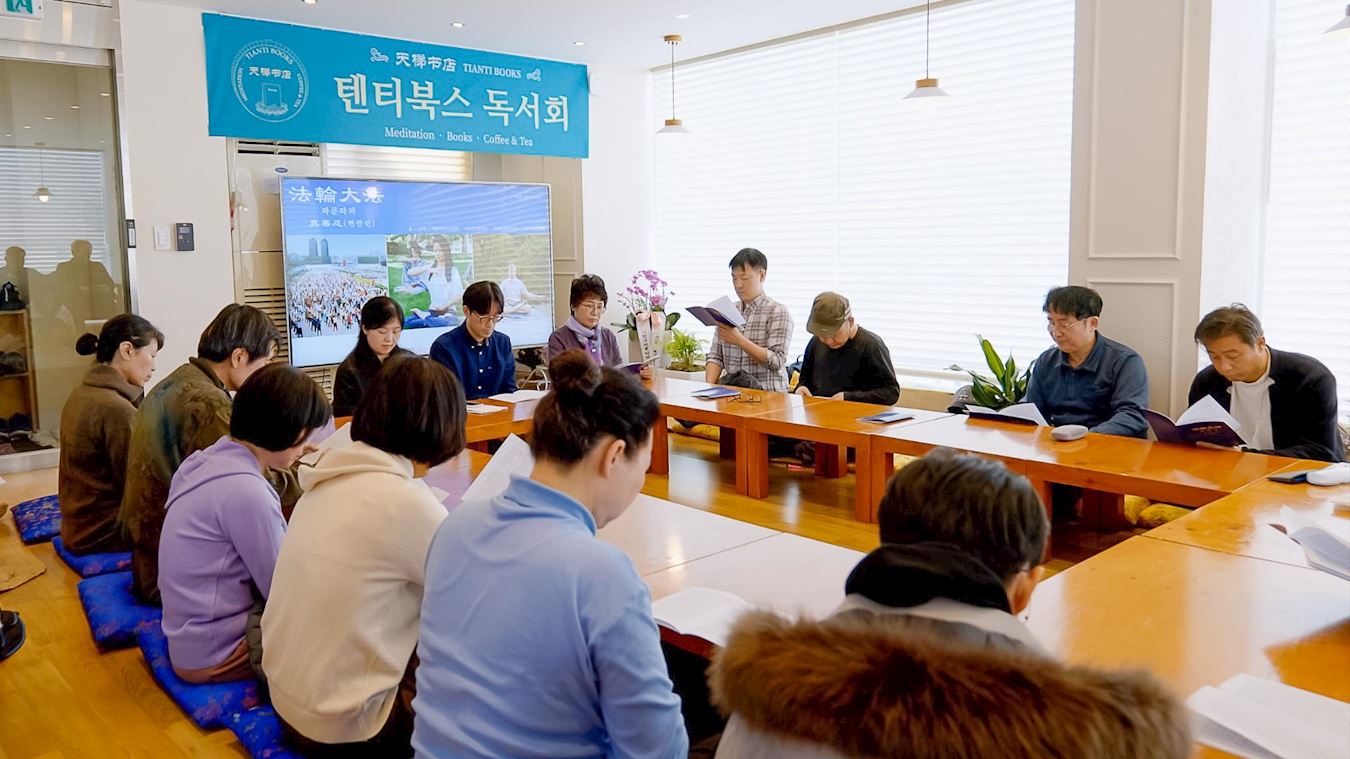![]() 图1:二零二三年三月十九日,韩国首尔“天梯书店”举办读书会,与会者一起学习由法轮大法创始人李洪志先生发表的《为什么会有人类》一文。 |