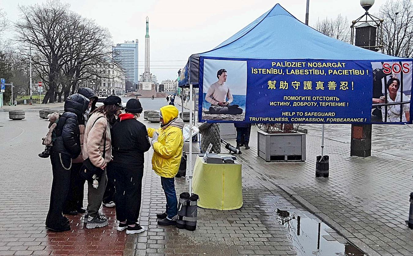 【明慧网二零二三年四月十三日】二零二三年四月一日,星期六,拉脱维亚法轮功学员在首都里加市举办每周一次的讲真相活动,希望让当地居民和游客了解发生在中国的中共对法轮功的迫害,并呼吁制止迫害。