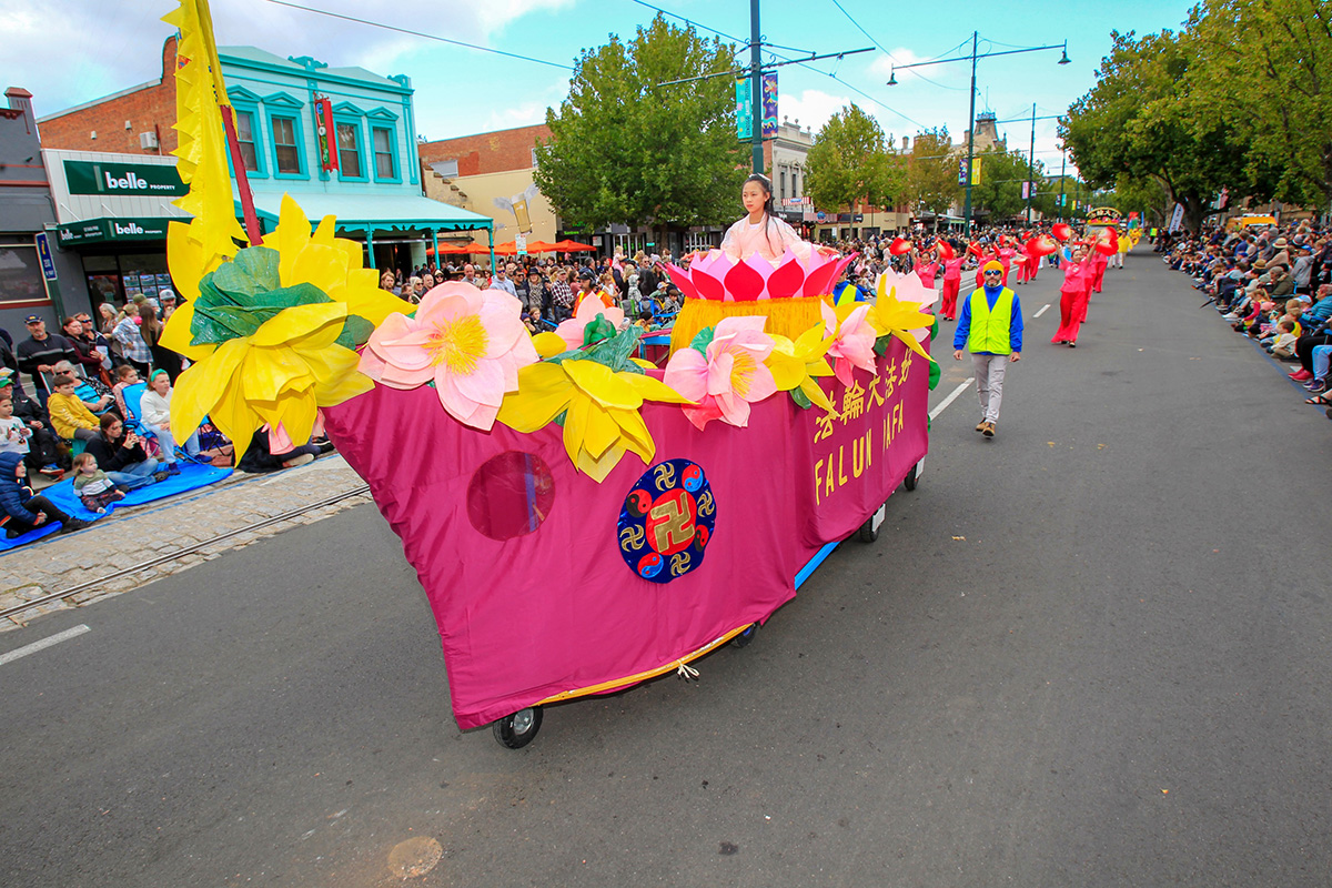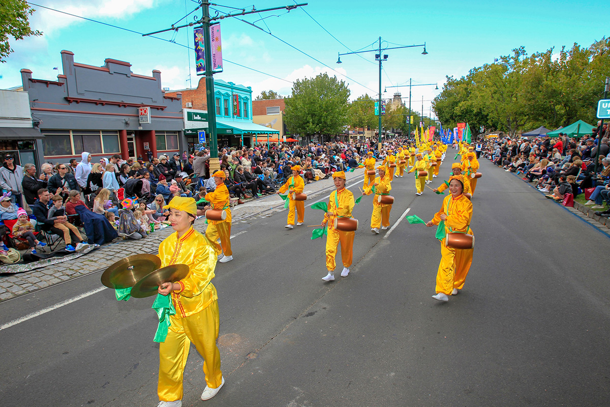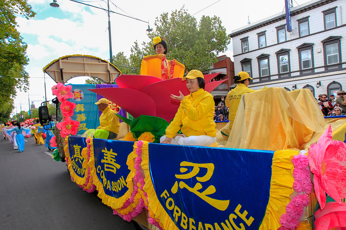 法轮功团体今年再次获邀参加。来自墨尔本和悉尼的部分学员,以色彩绚丽、丰富多彩的演出向当地民众传递着法轮大法的美好福音。