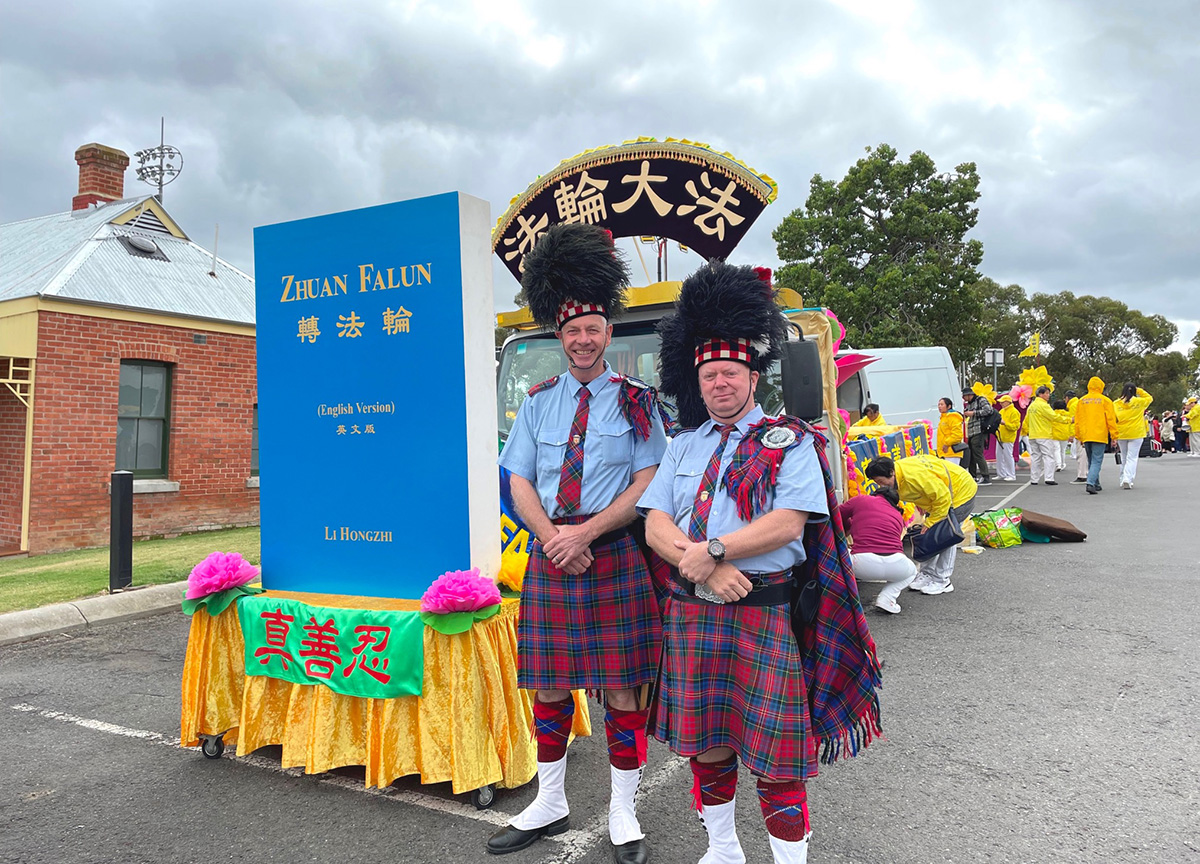 本迪戈高地管乐队(Bendigo Highland Pipe Band)的负责人格雷格・福塞特(Greg Fawcett)和乐队成员迈克・坎贝尔(Mike Campbell)也很钦佩法轮功学员传播真善忍美好价值付出的努力。