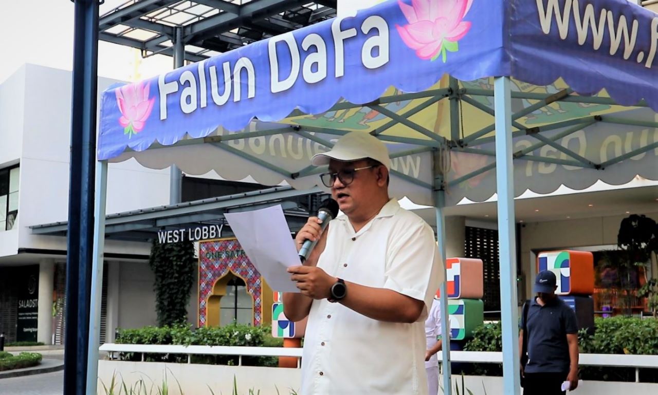 在雅加达的活动中,法轮大法学会发言人恒德拉(Hendra)呼吁停止对法轮大法持续二十四年的迫害。