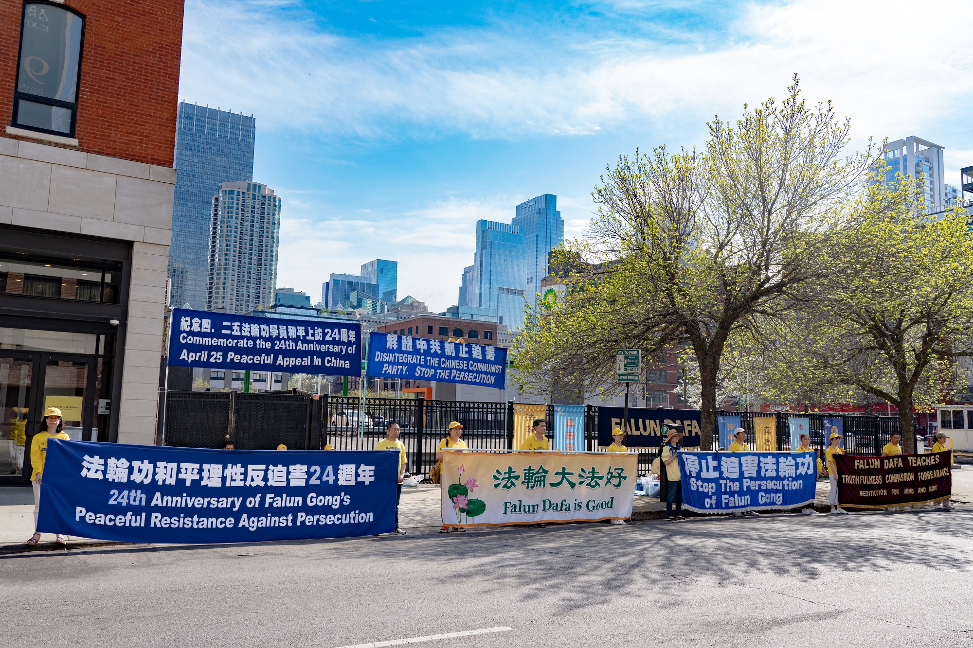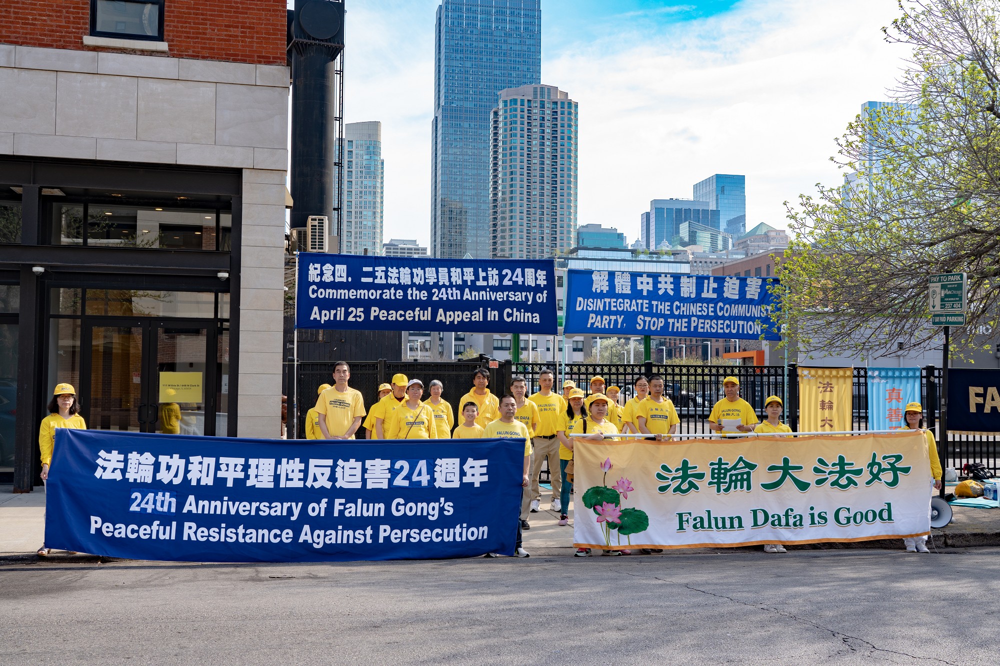 ![]() 图1~3:二零二三年四月十五日,大芝加哥地区的部分法轮功学员在中领馆前集会,纪念法轮功学员“四·二五”和平上访二十四周年。 |