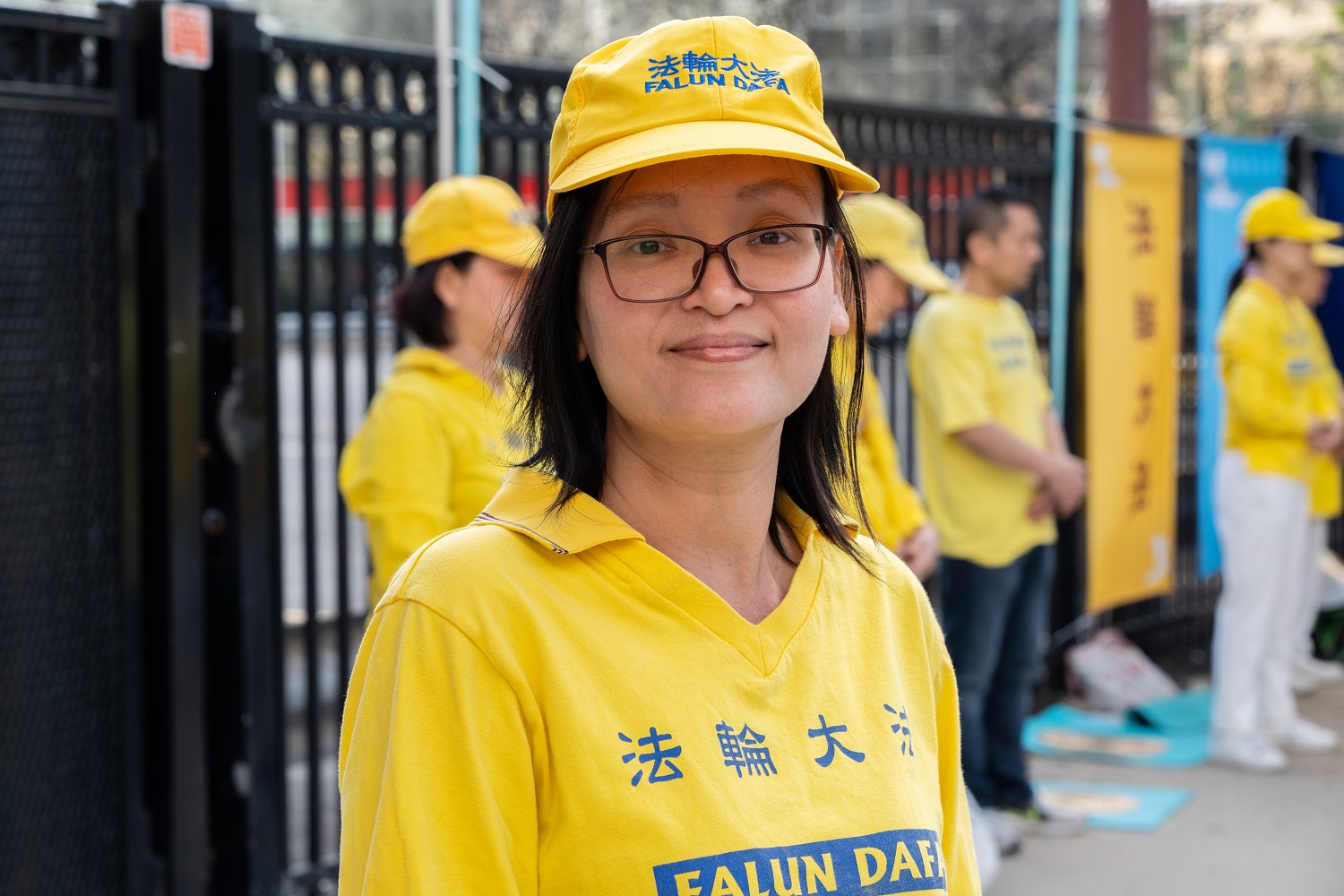 范觉得很高兴能参加在中领馆前的活动,她很珍惜有机会跟人们分享法轮大法的美好、能告诉人们在中国一直在发生的(中共)对法轮功学员的迫害。她说:“如果大家都来学习真、善、忍,世界将会变得更美好。”