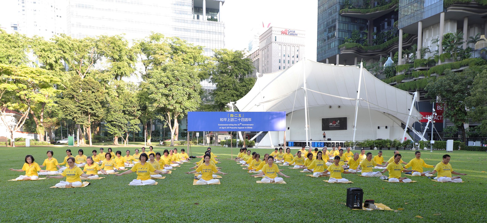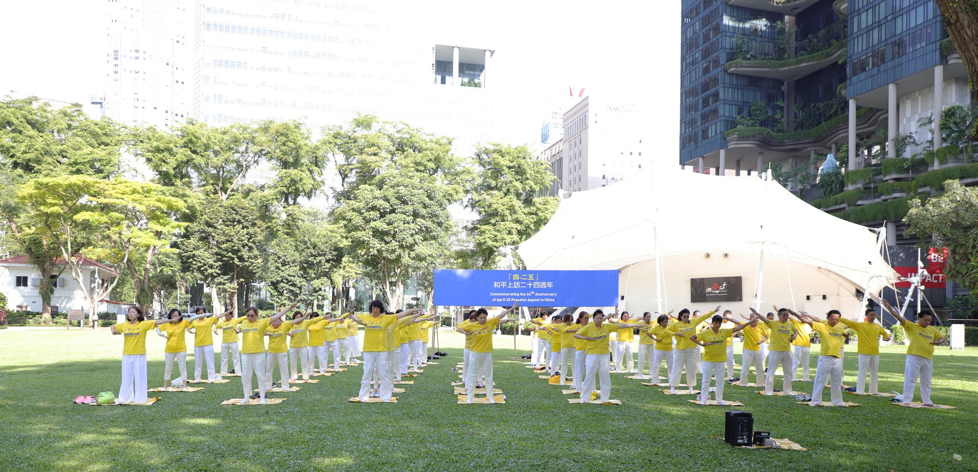 ![]() 图1~2:二零二三年四月二十一日下午,新加坡法轮功学员在芳林公园举办活动,纪念“四·二五”和平上访二十四周年,学员们在集体炼功。 |