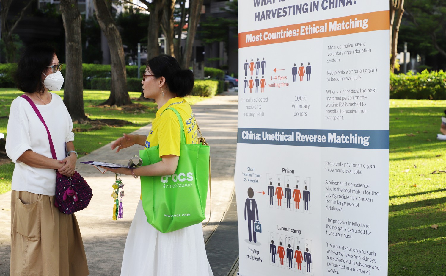 一对西人在了解了中共活摘法轮功学员器官的罪行后,询问如何帮助,学员建议他们在“帮助停止中共活摘器官”的网站上参与征签,他们表示会去签名。