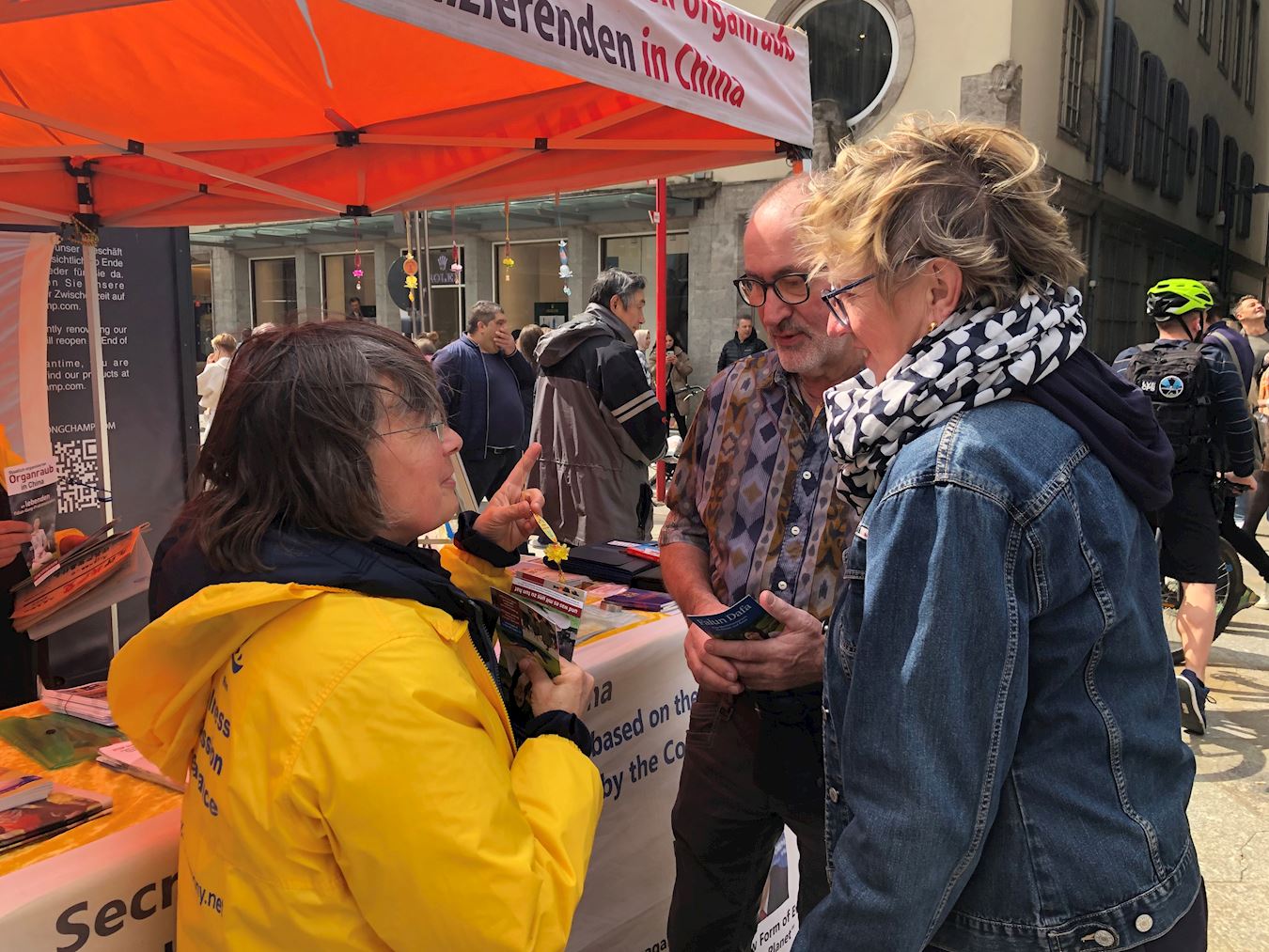 当蒂莫(Timo)来到真相点时,正在下雨,所以学员讲真相时请他进到帐篷里。他说:“我看到下雨时你们还能这么平静地炼功,觉得很惊讶,所以就过来看看。”当了解到中共对法轮功的迫害后,他说:“在中国发生了这么可怕的事情。如果我能(为反迫害)做点什么,我当然会做的。”