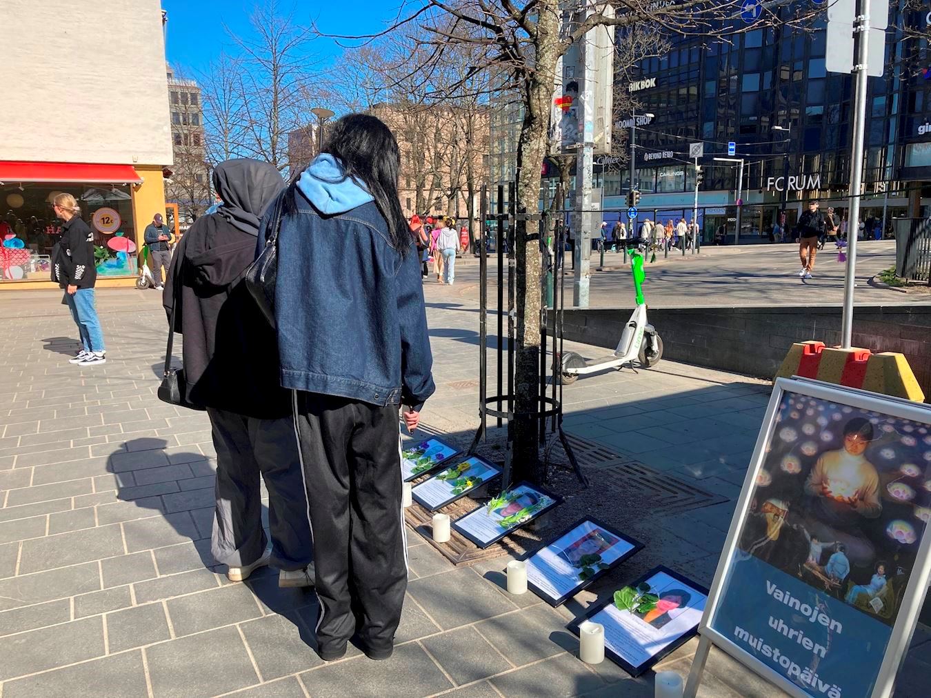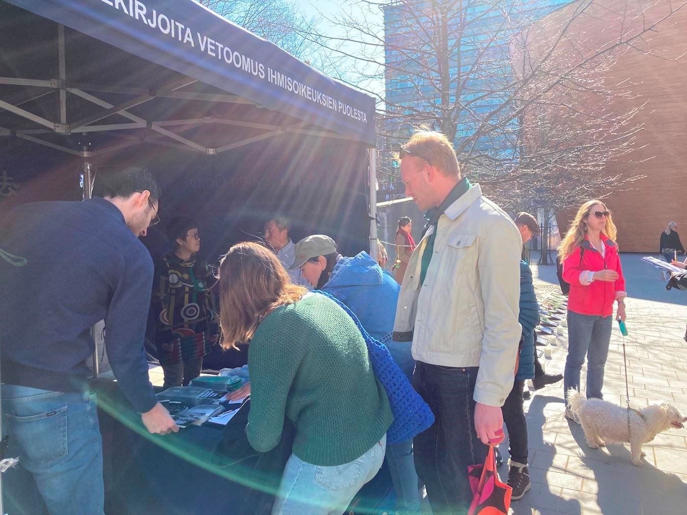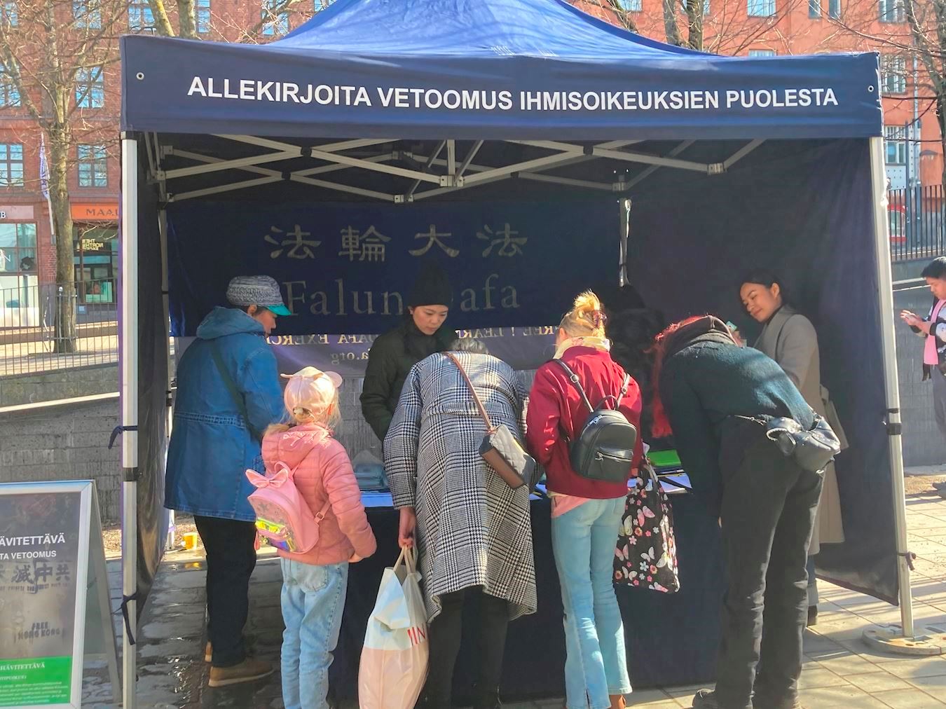 一位开车路过的芬兰市民,看见横幅上的文字后,直接把车停在横幅前。他摇下车窗,手指着活摘器官的横幅问学员这是真的吗?他表示之前从来没有听说过。