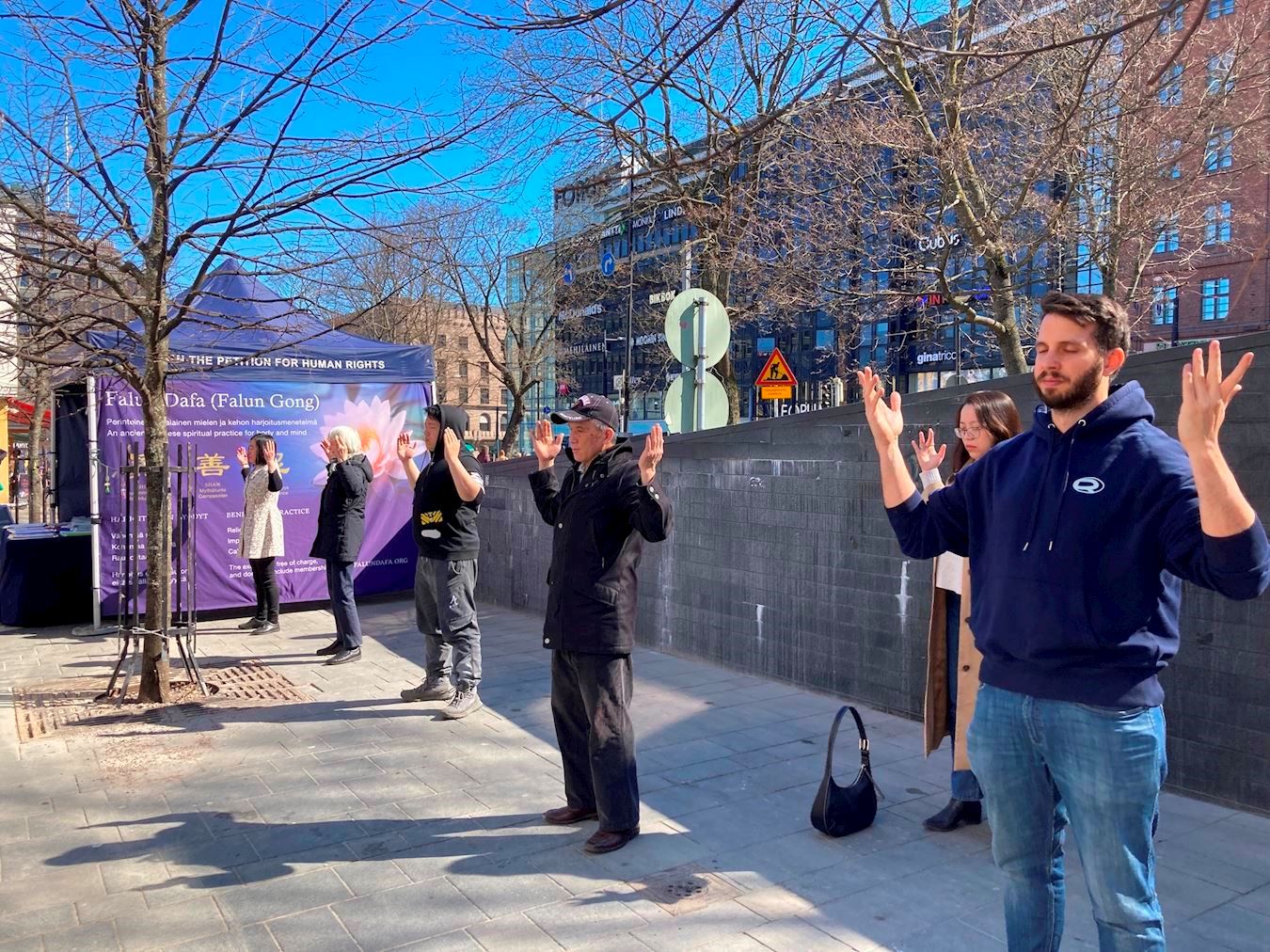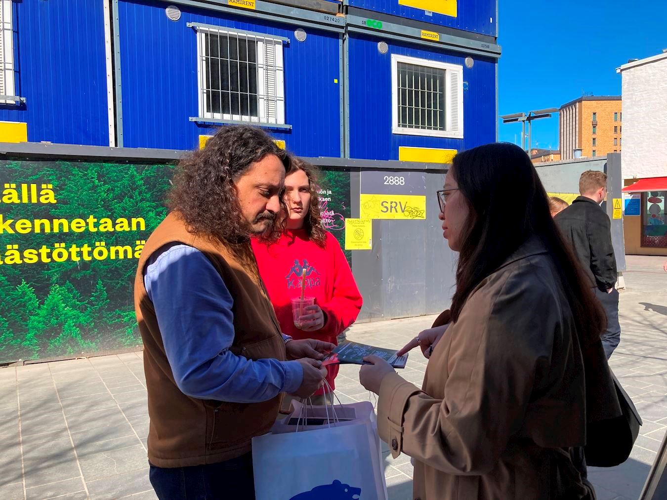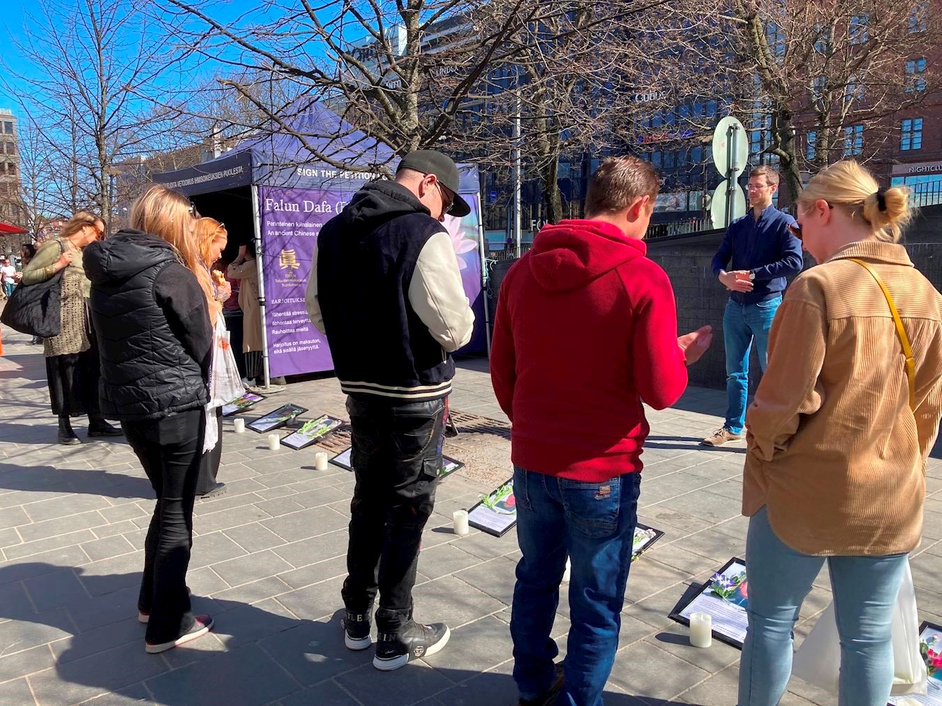 一位开车路过的芬兰市民,看见横幅上的文字后,直接把车停在横幅前。他摇下车窗,手指着活摘器官的横幅问学员这是真的吗?他表示之前从来没有听说过。