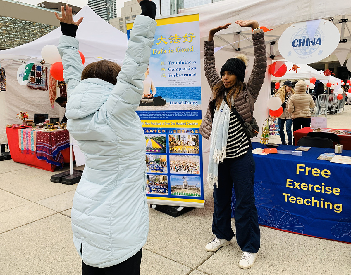当地的法轮功学员也受邀参加了活动,向民众介绍作为中国的传统修炼方法——法轮大法。很多感兴趣的人当场学炼功法,纷纷表示“炼功感觉很好”。