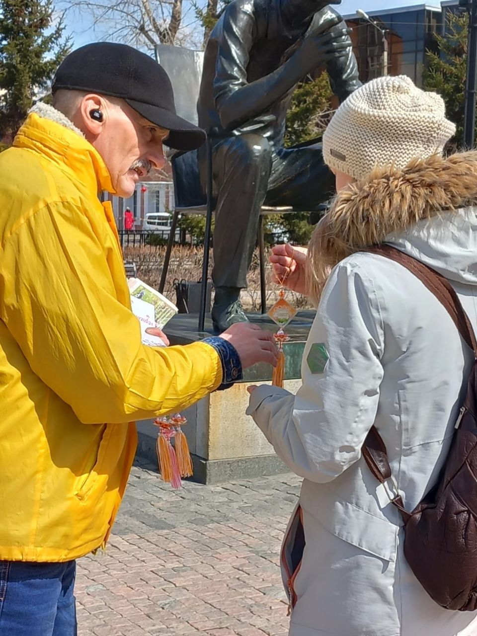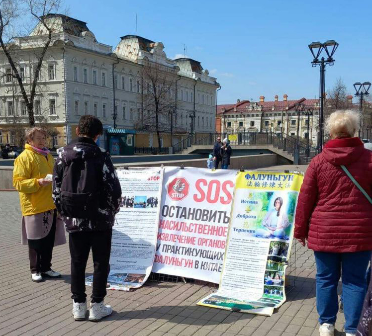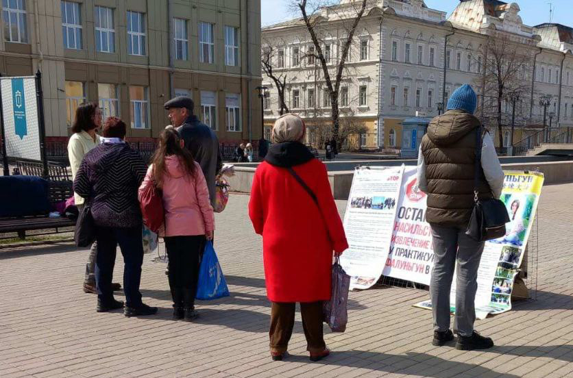 ![]() 图1~2:纪念四·二五,二零二三年四月二十三日,俄罗斯法轮功学员在伊尔库茨克市中心的劳动广场举办活动,传播法轮功的真相。过往路人纷纷驻足阅读真相展板。 |