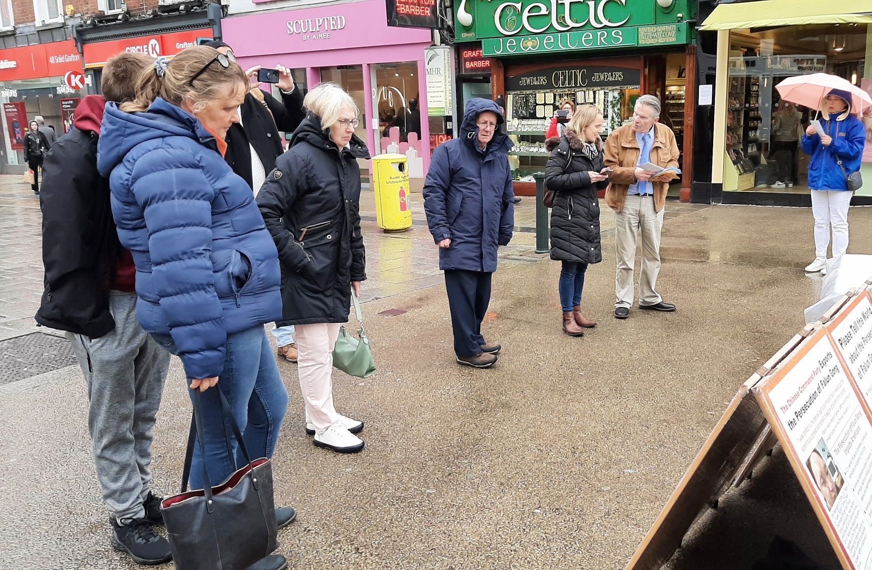 马克(Mark)打着雨伞,聆听了法轮功学员李松原讲述她的母亲遭受迫害的经历后,他说:“太令人心痛了”。虽然此前曾听说过中共对信仰团体的迫害,不过这是马克第一次了解到法轮功,以及中共如何迫害这些信仰真、善、忍的善良民众。当听到中共活体摘取法轮功修炼者的器官时,他不禁说,“这实在太糟糕了,你们在征集签名吗?”他表示,希望自己的签名能够帮助制止这场血腥的迫害。