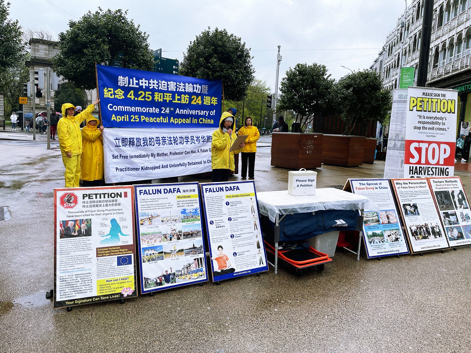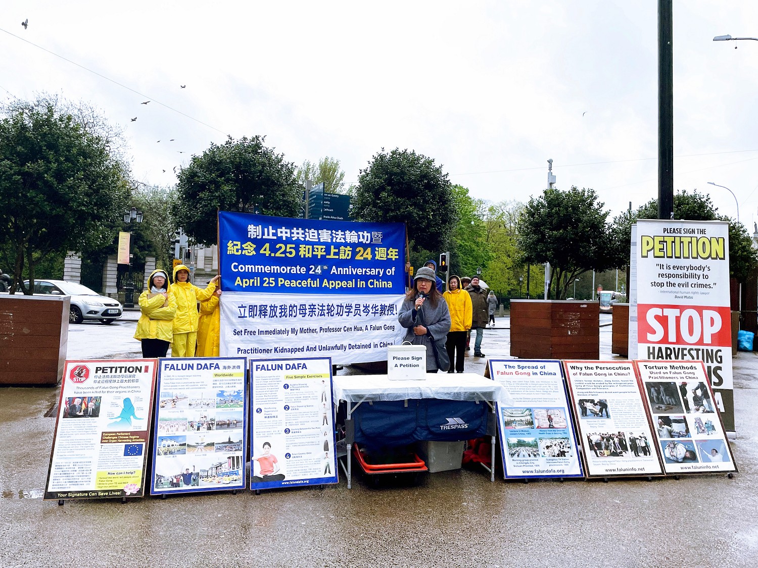 爱尔兰法轮大法佛学会会长刘女士表示,一九九九年四月二十五日,逾万名中国法轮功学员自发到北京维权上访,这是“在中共统治如此严密的社会里,第一次出现如此和平的上访,树立了道德的丰碑。二十四年来,法轮功学员也始终秉承着“四·二五”精神,和平理性的反迫害。”